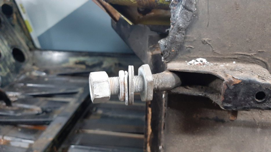 Zdjąłem wszystko, oprócz wewnętrznej nakrętki. Zmierzyłem jak głęboko jest wkręcona w każdym zawiasie. Dzięki temu podczas składania trafię drzwiami +/- we właściwe miejsce.