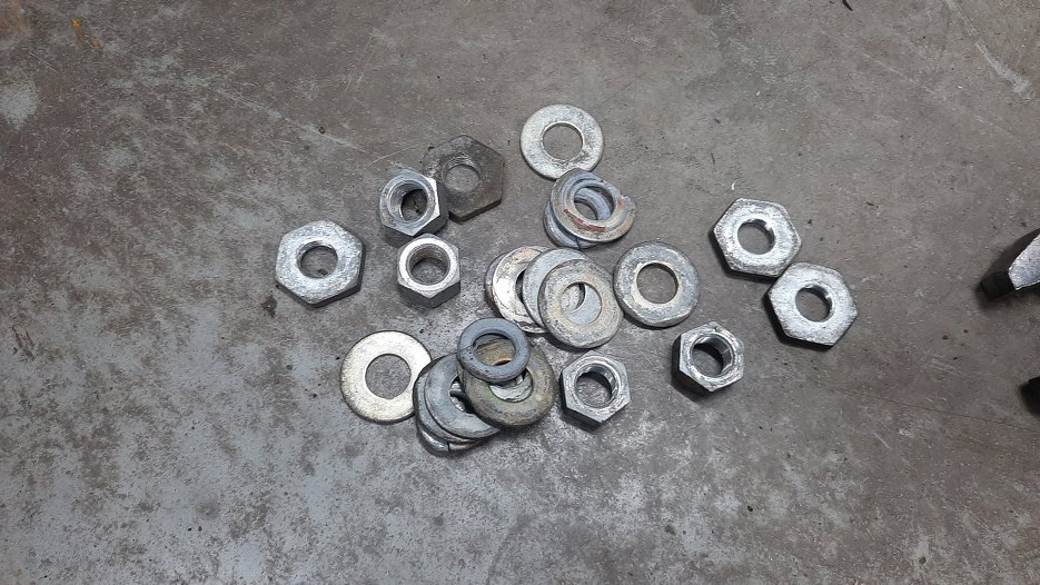Na zawiasach drzwi zostały nakrętki i podkładki.