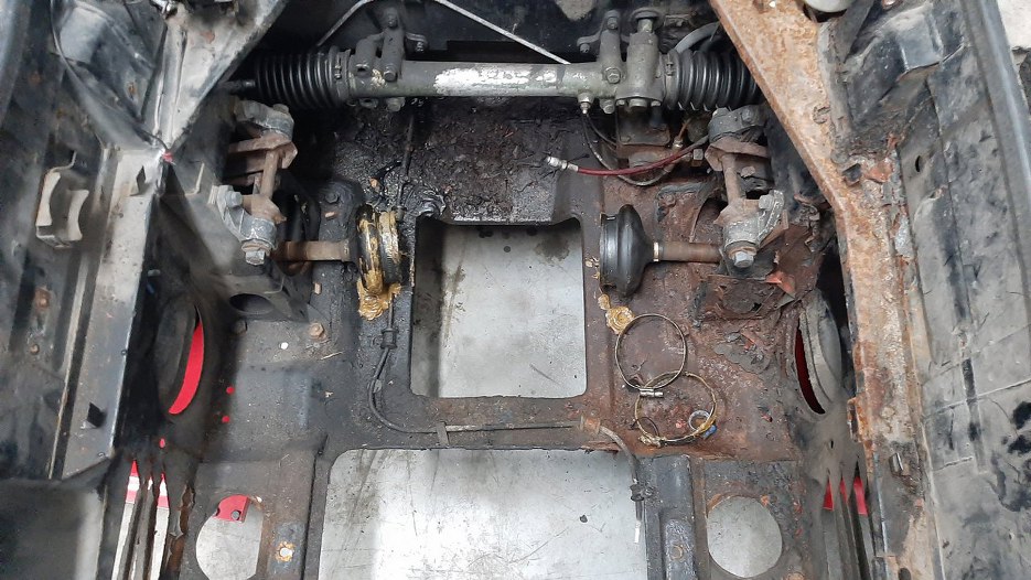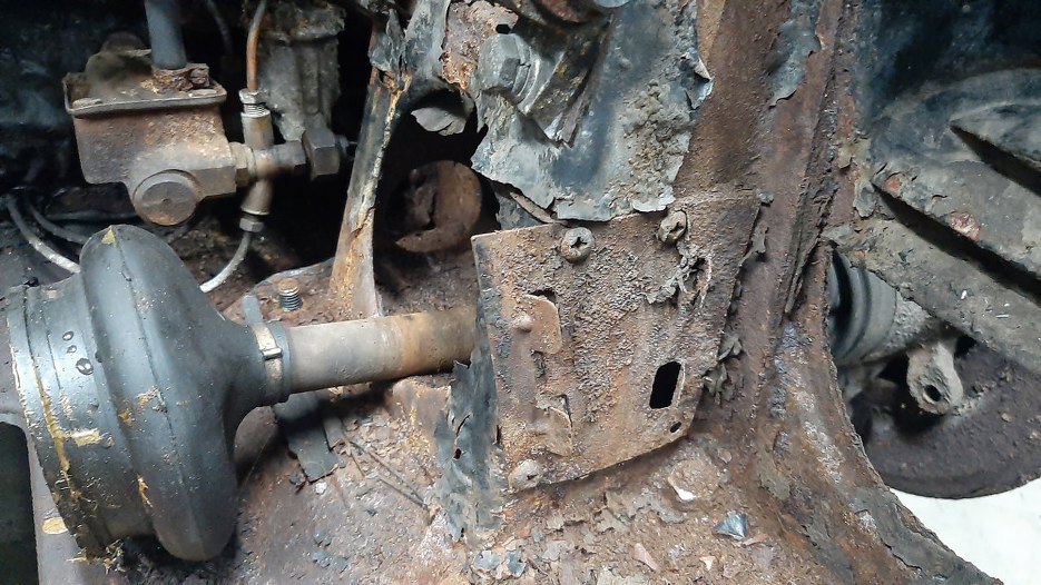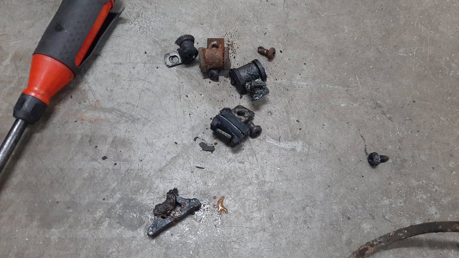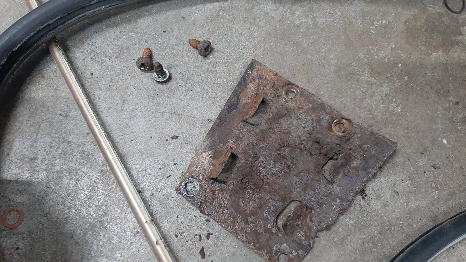 Udało mi się nawet wykręcić te wkręty mocujące, ale sama blacha jest tak zgnita, że chyba będę musiał dorobić nową.