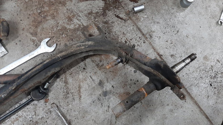 Odkręciłem. Muszę jeszcze odczepić linkę hamulca ręcznego.