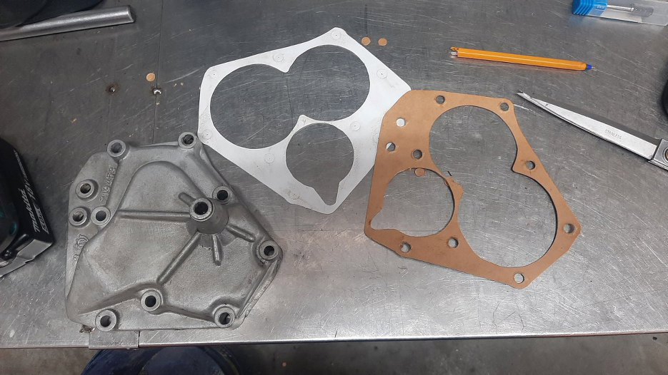 Założyłem dorobioną uszczelkę. Do tylnej pokrywki włożyłem podkładki regulacyjne. Żeby nie wypadały przykleiłem je na smar.