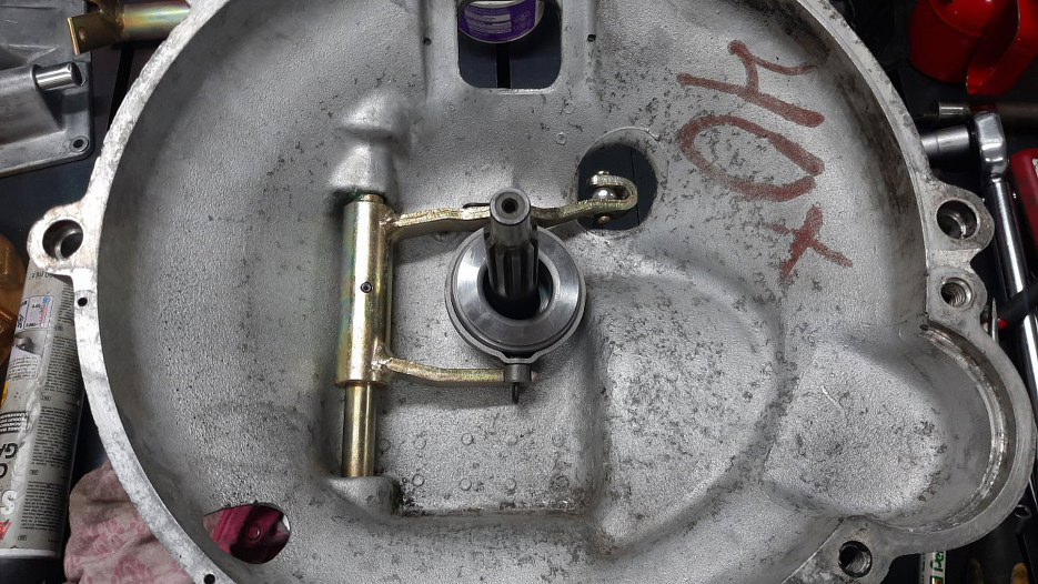 Po założeniu uszczelniacza zamontowałem łapę sprzęgła i nowe łożysko.