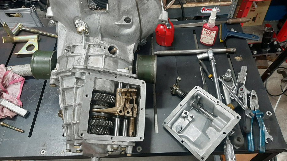 Wyregulowałem mechanizmy wybierania biegów i dokręciłem ich nakrętki kontrujące. Założyłem też półosie.