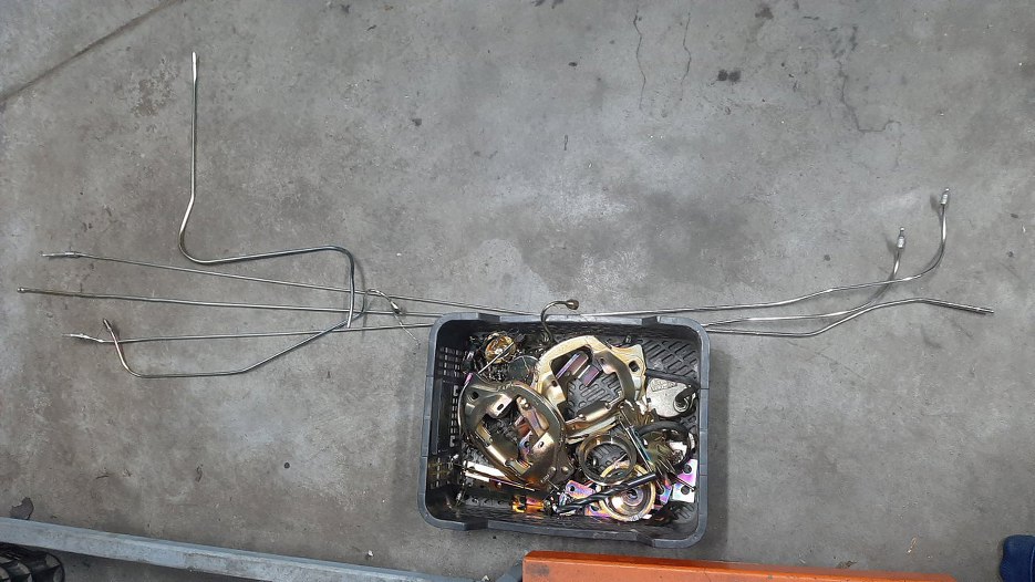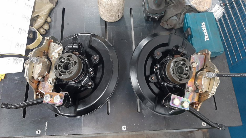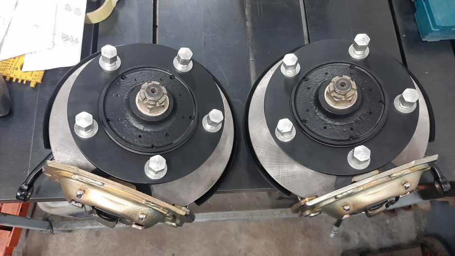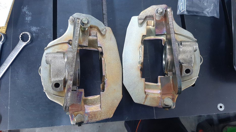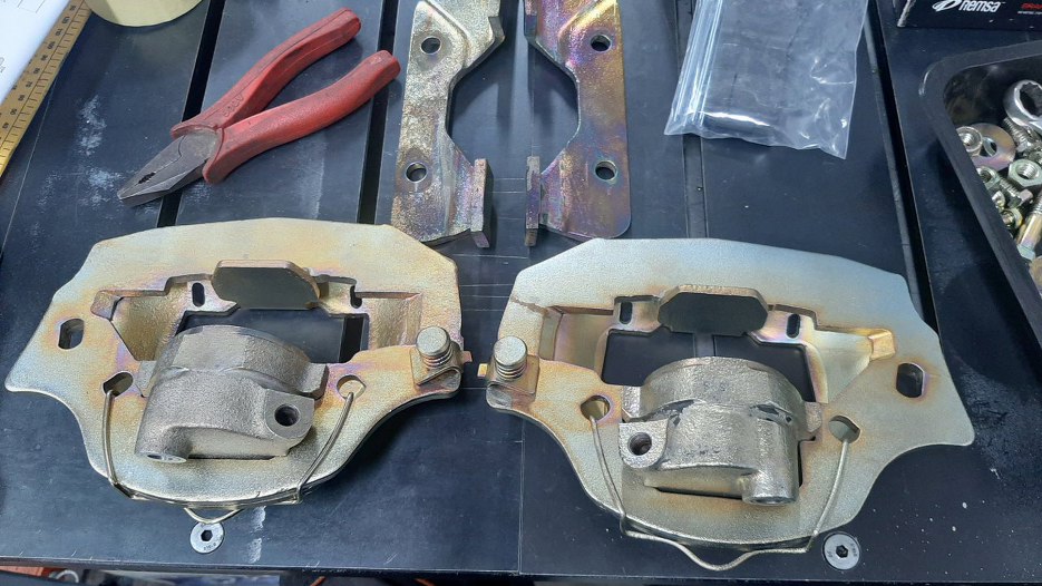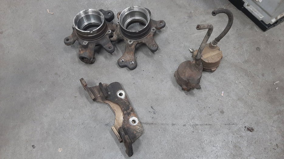 Skoro mam już gotowe zwrotnice z piastami, to pora na dokończenie tematu hamulców. Dla przypomnienia - tak wyglądały części przed odnowieniem.