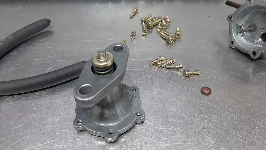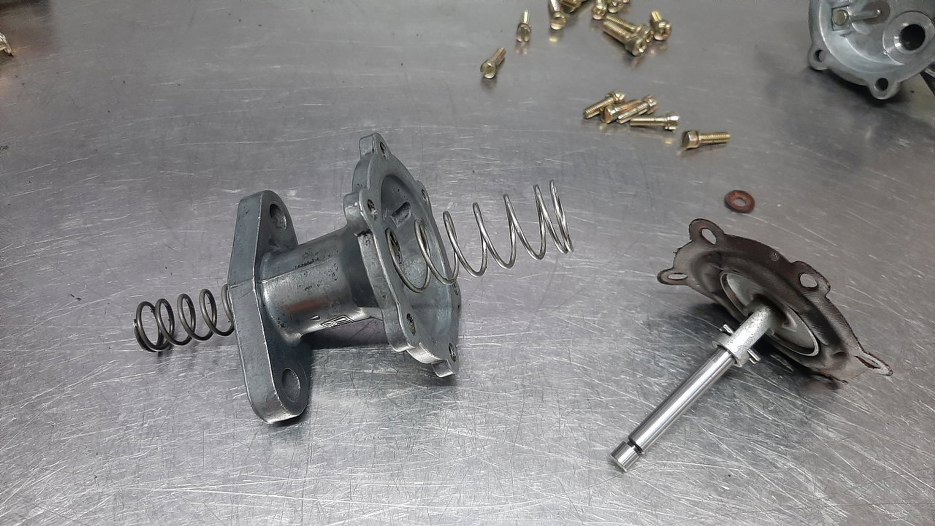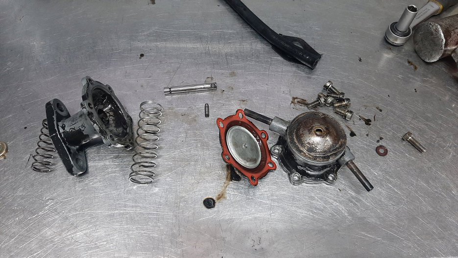 Rozłożyłem ją całkowicie. Membrana jest jeszcze cała. I tu jest loteria, bo nie wiadomo ile jeszcze ta membrana posłuży, a nowych nie ma dostępnych. Oczywiście można dać po prostu nową pompę paliwa... ale można dać nową dopiero jak ta fajna, oryginalna padnie :). Myślę, że warto spróbować.