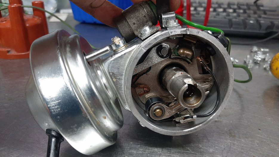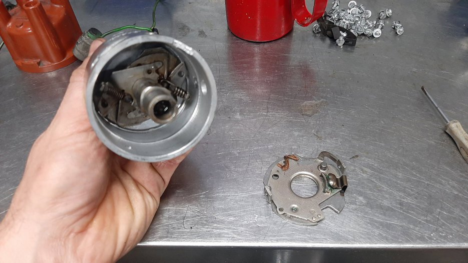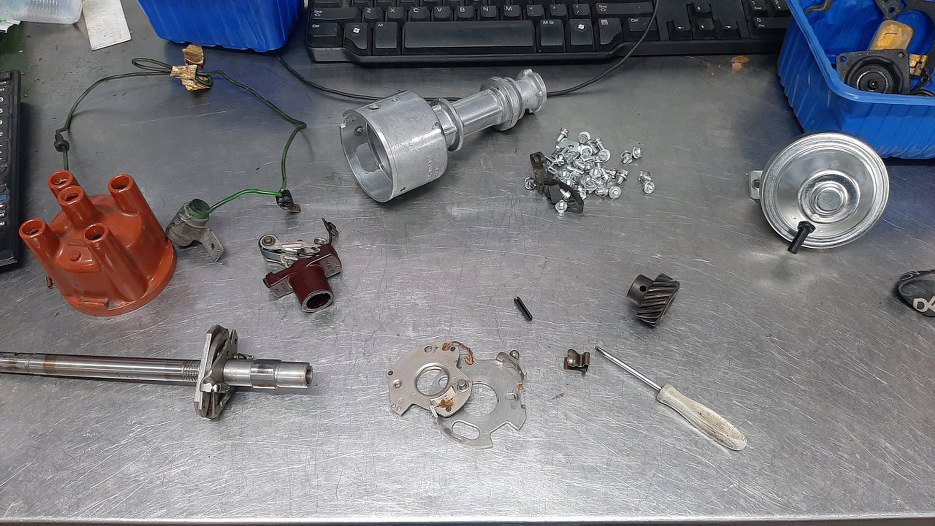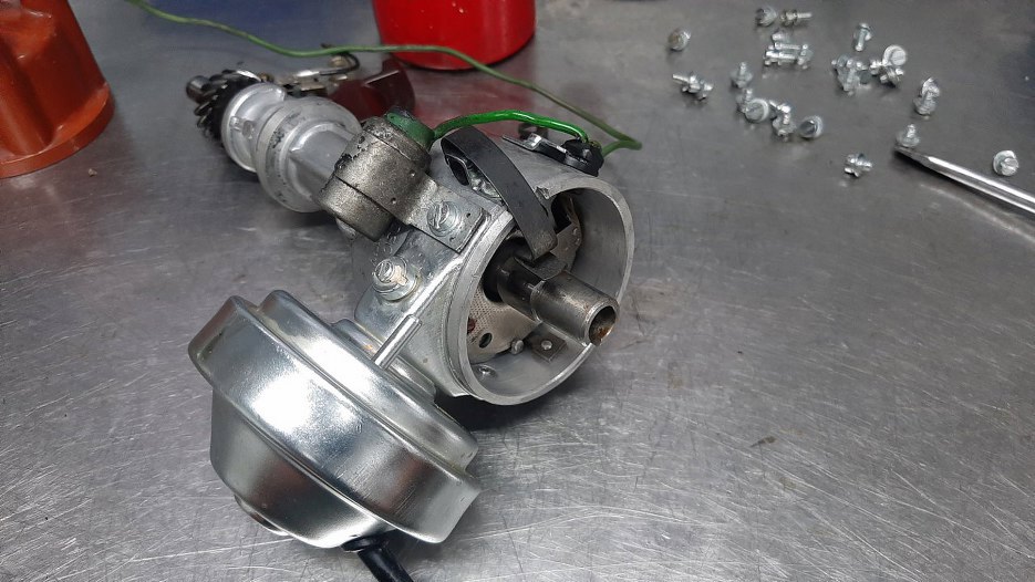 Po odebraniu śrubek z cynkowania i oczyszczeniu obudowy aparatu zapłonowego mogę to zmontować.
