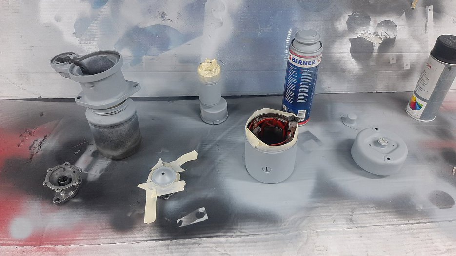 Po oczyszczeniu wszystkiego pomalowałem to podkładem epoksydowym. Widać tu też pompę paliwa :).