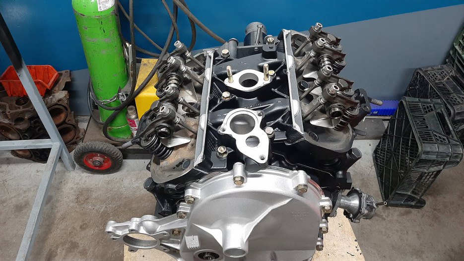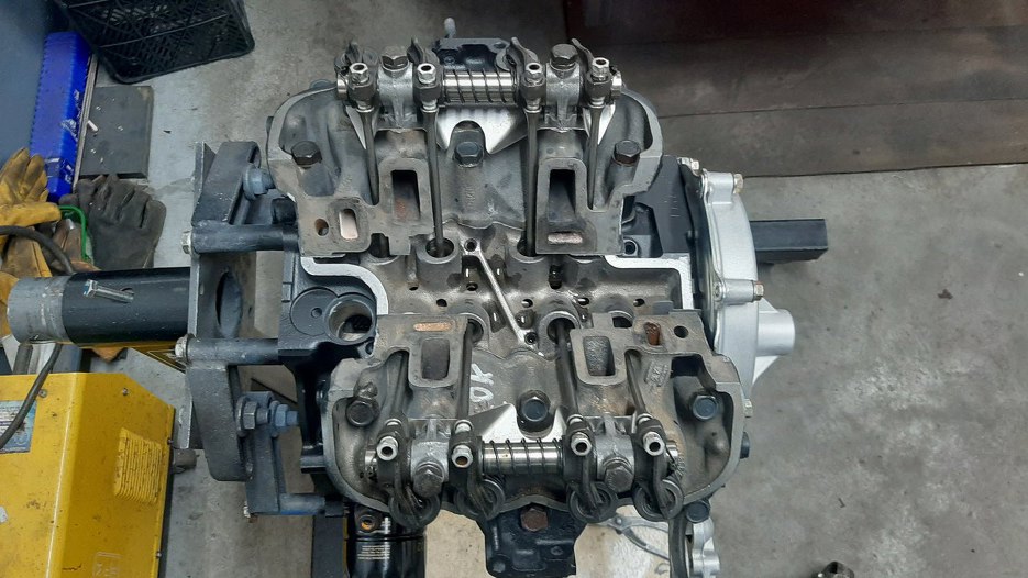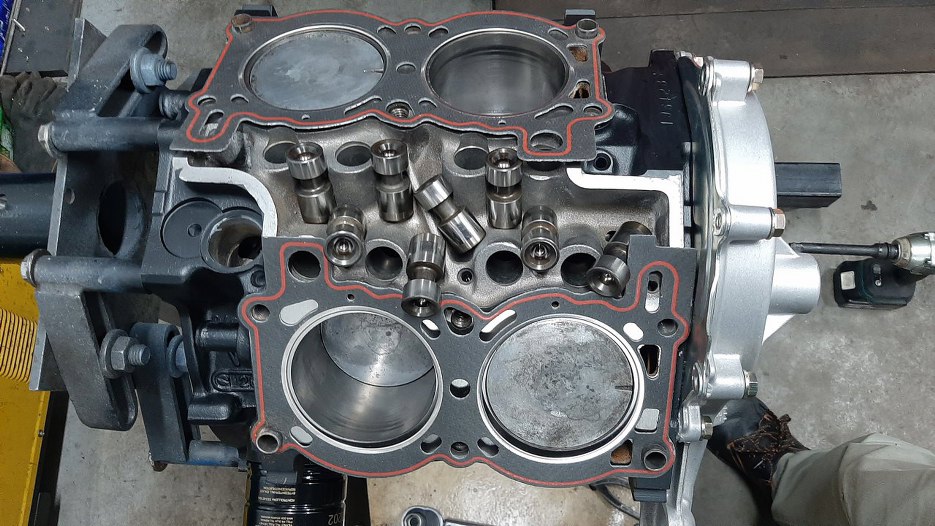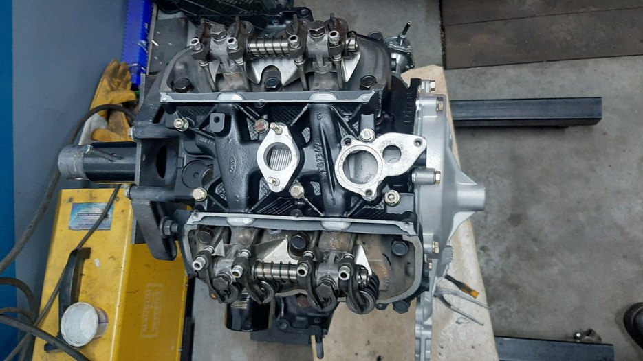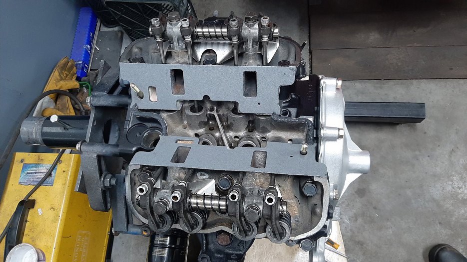 Zazwyczaj przykręcałbym najpierw miskę oleju, ale skoro pokrywa rozrządu jest tymczasowa, to nie mogę, bo nie mam do czego tej miski przykręcić... Zabieram się zatem za składanie głowic.