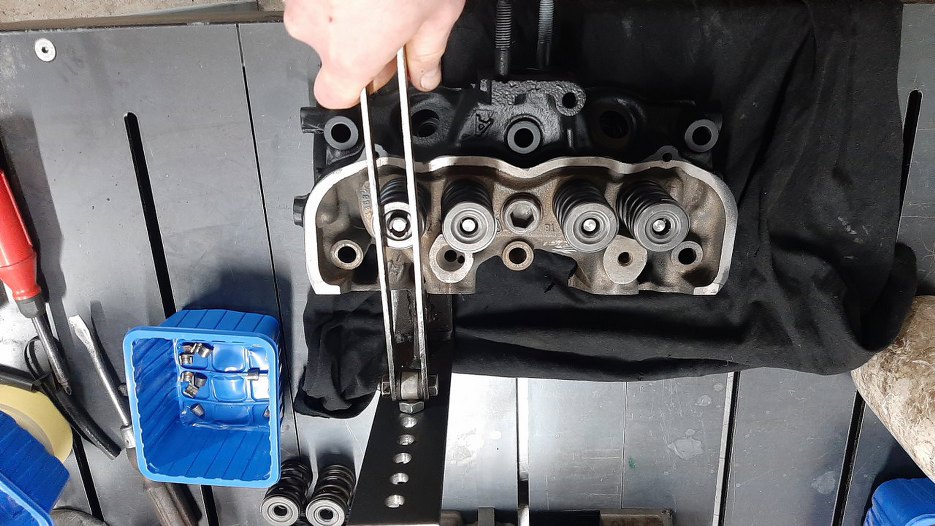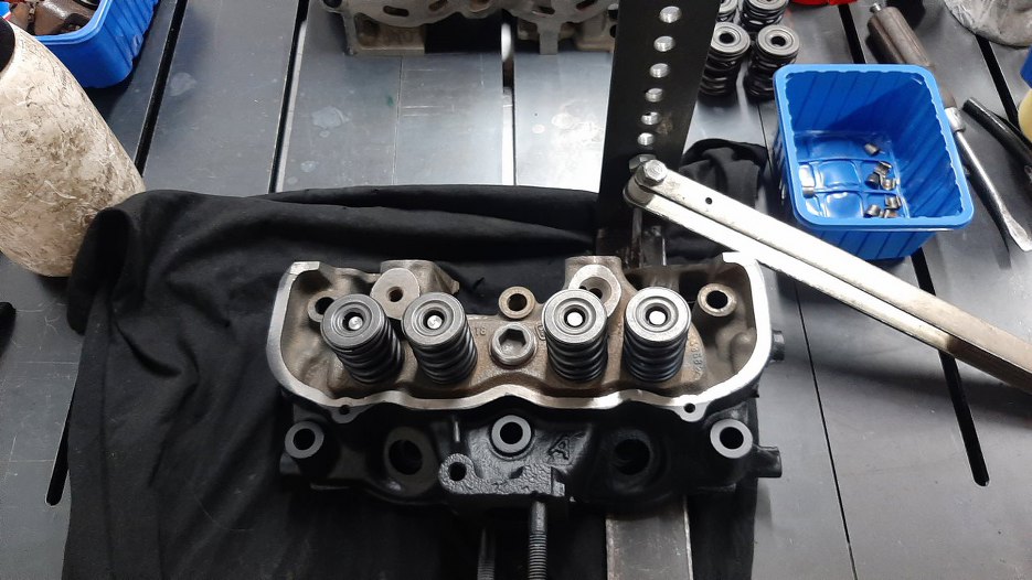 Następnie ścisnąłem po kolei sprężyny zaworowe i zapiąłem je zamkami.