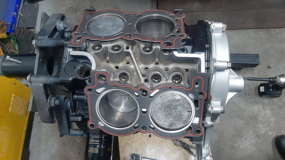 Skoro głowice mam gotowe, to skłdam silnik dalej. Przygotowałem uszczelki pod głowice.