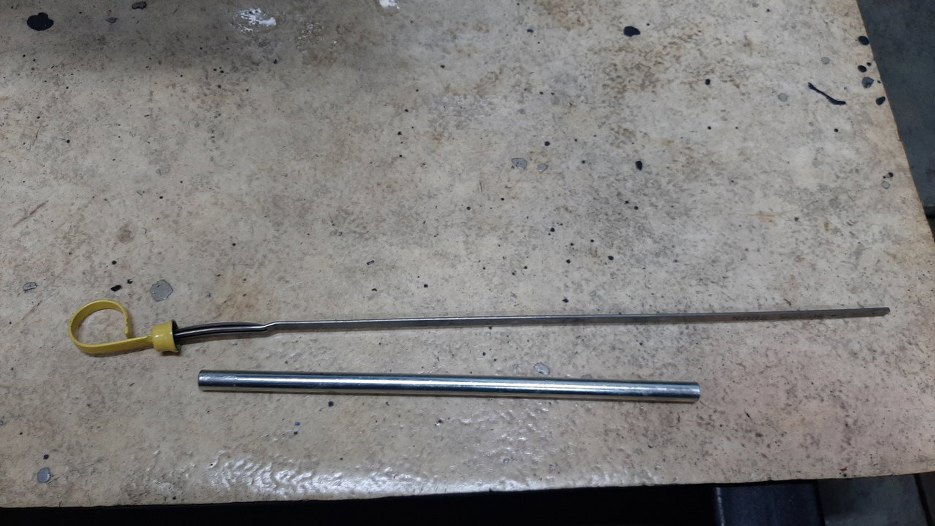 To może zanim dojdę do końca strony, założę jeszcze rurkę bagnetu oleju. Sam bagnet też został odrdzewiony i pomalowałem końcówkę na żółto.