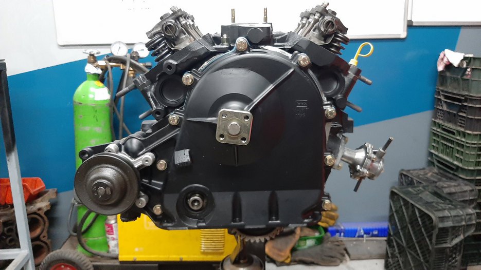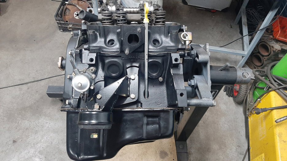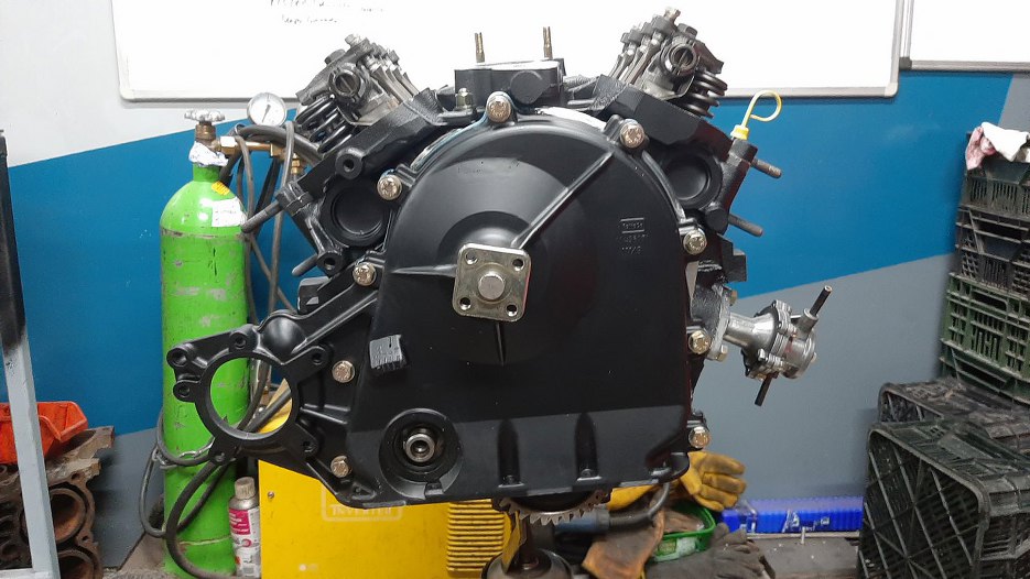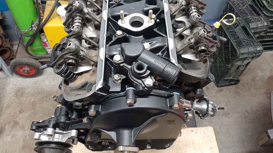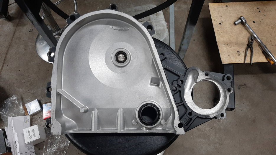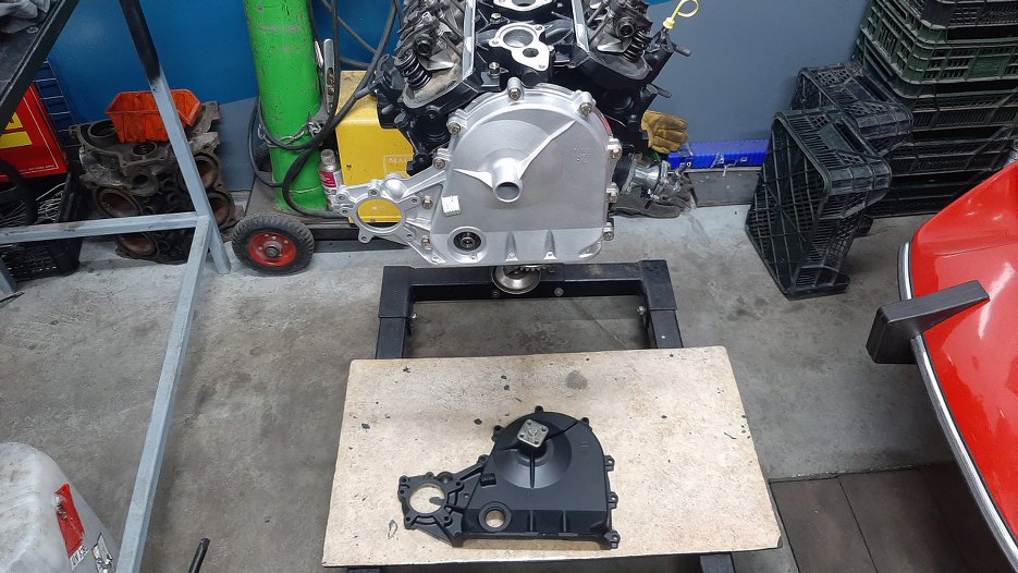 Przypomnijmy sobie, na jakim etapie jesteśmy. Sporo silnika już mam złożone, została jeszcze ta tymczasowa pokrywa rozrządu. To może nią się teraz zajmę?