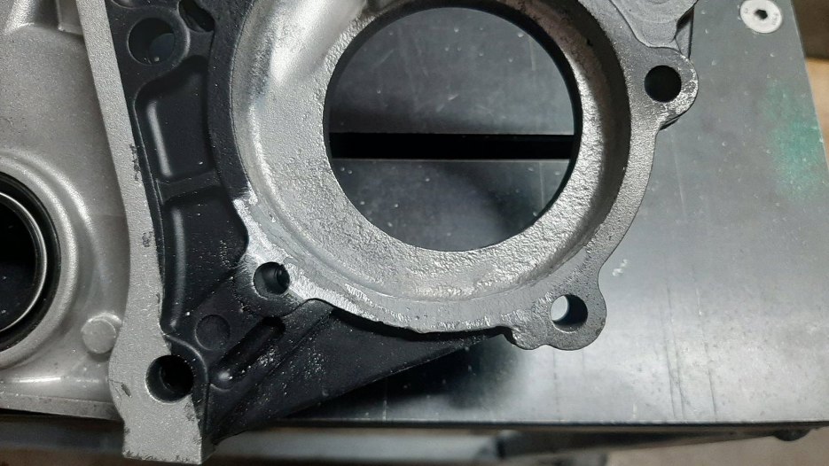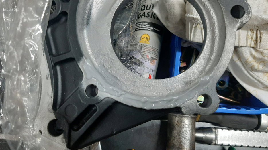 Problem pojawił się przy pompie wody. Było tu trochę wżerów... Postanowiłem nie spawać tego, a zakleić specjalnym Loctitem.