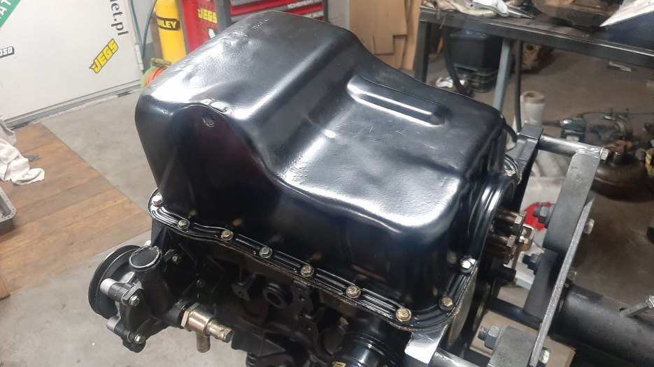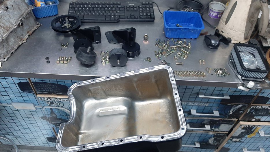 Dlatego zrobię co innego, co mam prawie gotowe :). Doczyściłem po piaskowaniu miskę olejową w środku. Mam też gotowe łapy silnika z poduszkami.