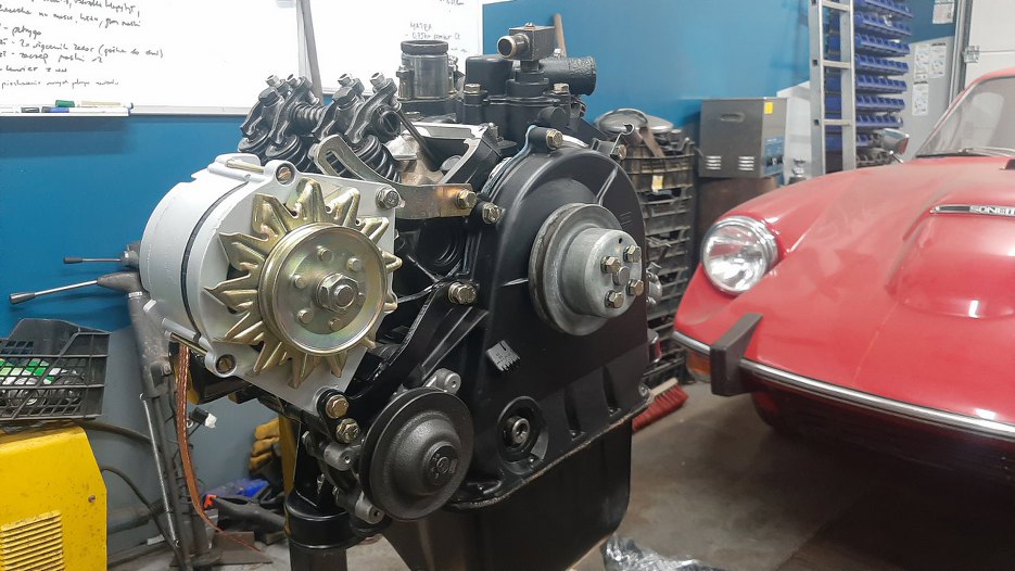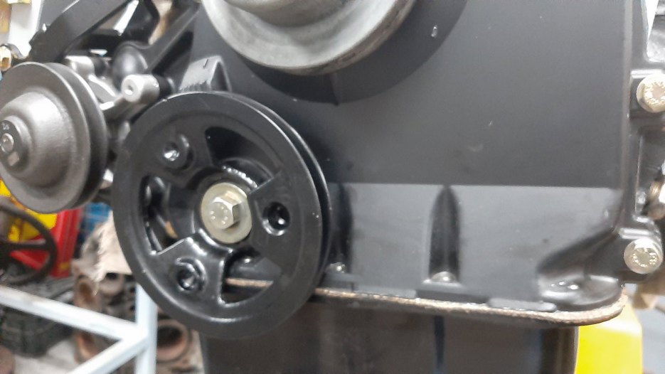Przykręciłem alternator. Założyłem też koło pasowe wiatraka. Jego nie odnawiałem. Zachowane jest w dobrym stanie i stwierdziłem, że ciekawie będzie je tak zostawić.