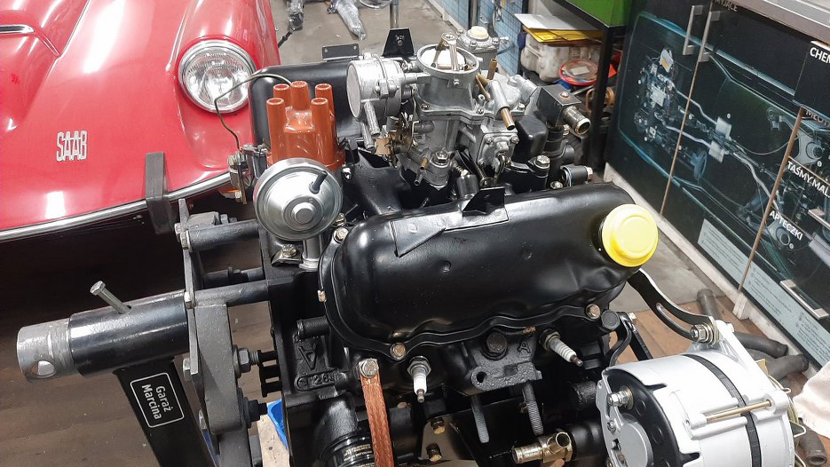 Następnie przykręciłem gaźnik. Widać też odnowiony korek wlewu oleju.