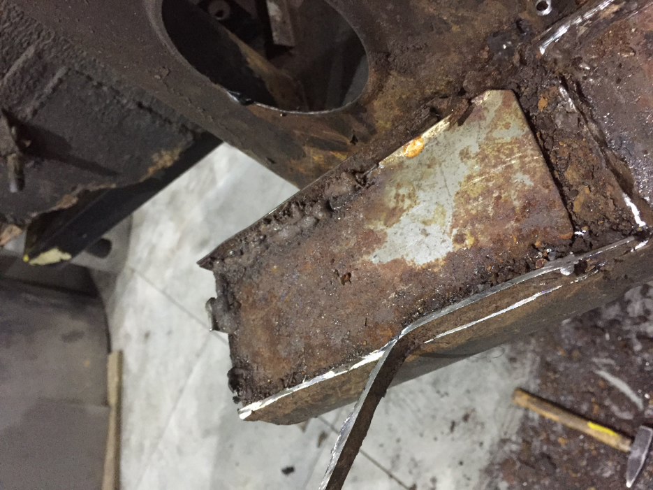 Po dokopaniu się do zdrowej blachy, została ona oczyszczona i zabezpieczona. Ogólnie to powinno być to wypiaskowane przed pracami, ale akurat była zima i piasek był wilgotny. Dlatego 95% blacharki zostało zrobione przed piaskowaniem. Po piaskowaniu zostały poprawione te miejsca, które odkryło piaskowanie.