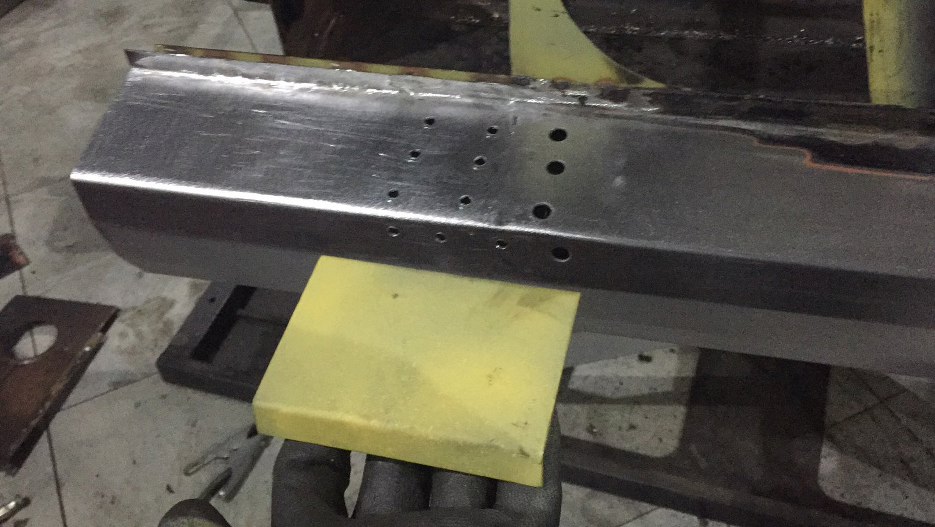 Pod spodem zostanie wspawane te wzmocnienie. Otwory są na spawy.