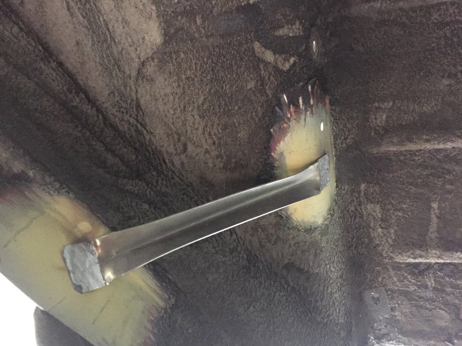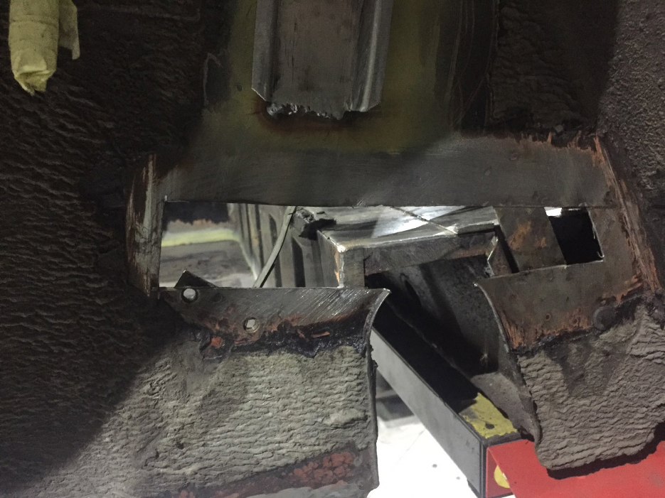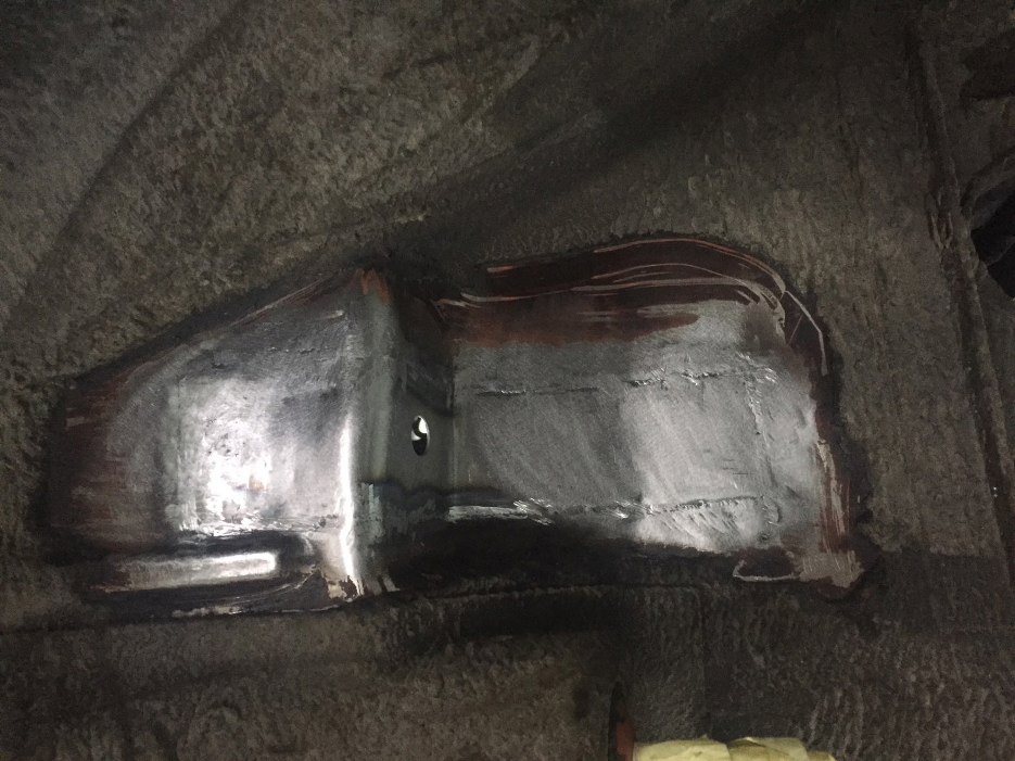 Uzupełniona ścianka i wspawane nowe wzmocnienie.