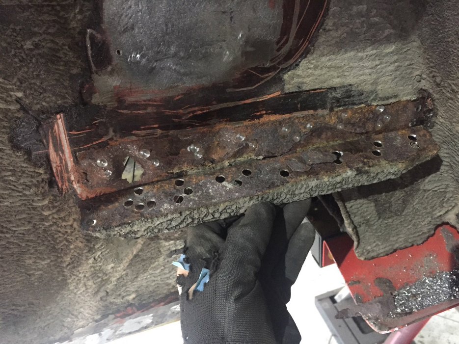 Z lewej strony też wzmocnienie nad wycięciem na belkę tylną było zardzewiałe.