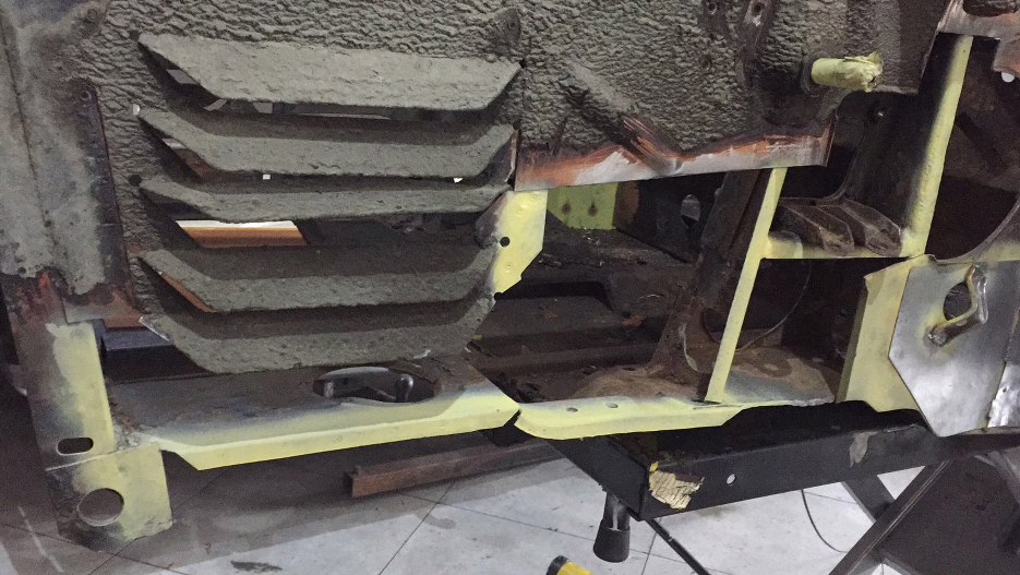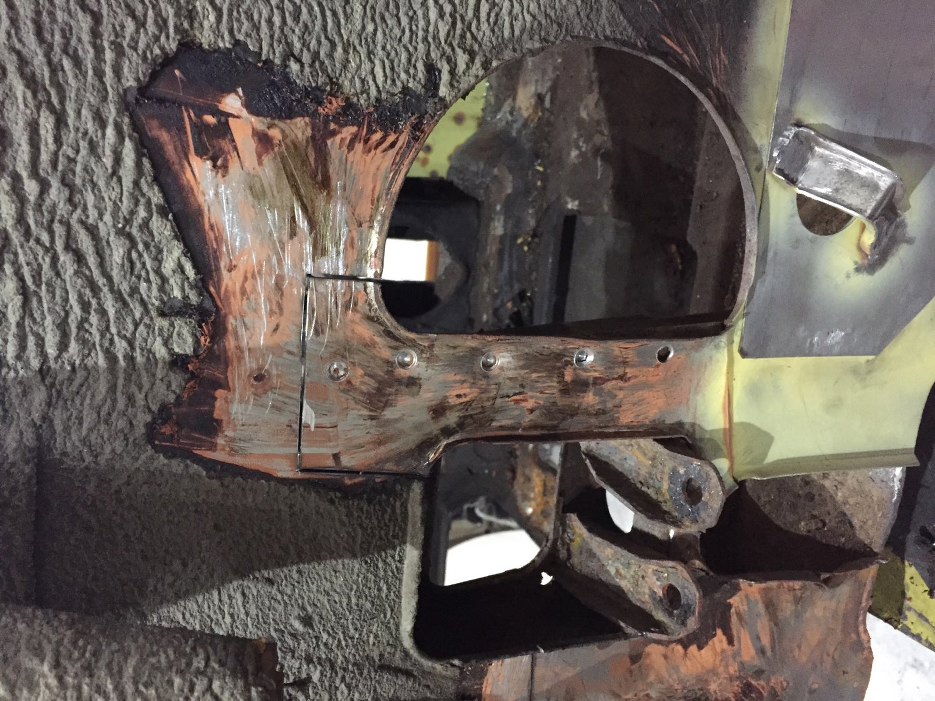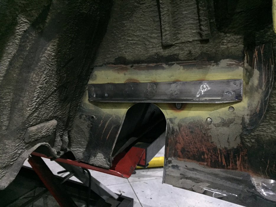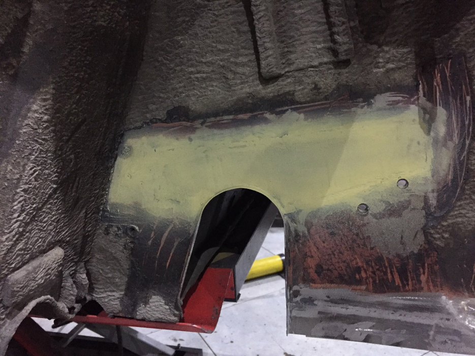 Poprzednio naprawione było wszystko w tył od wycięcia na półośkę, teraz wycięte jest praktycznie wszystko w przód, aż do końca samochodu.
