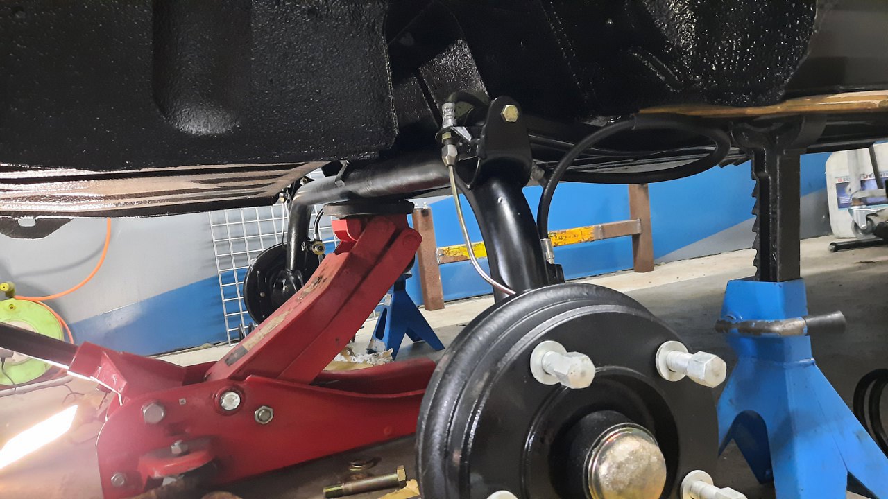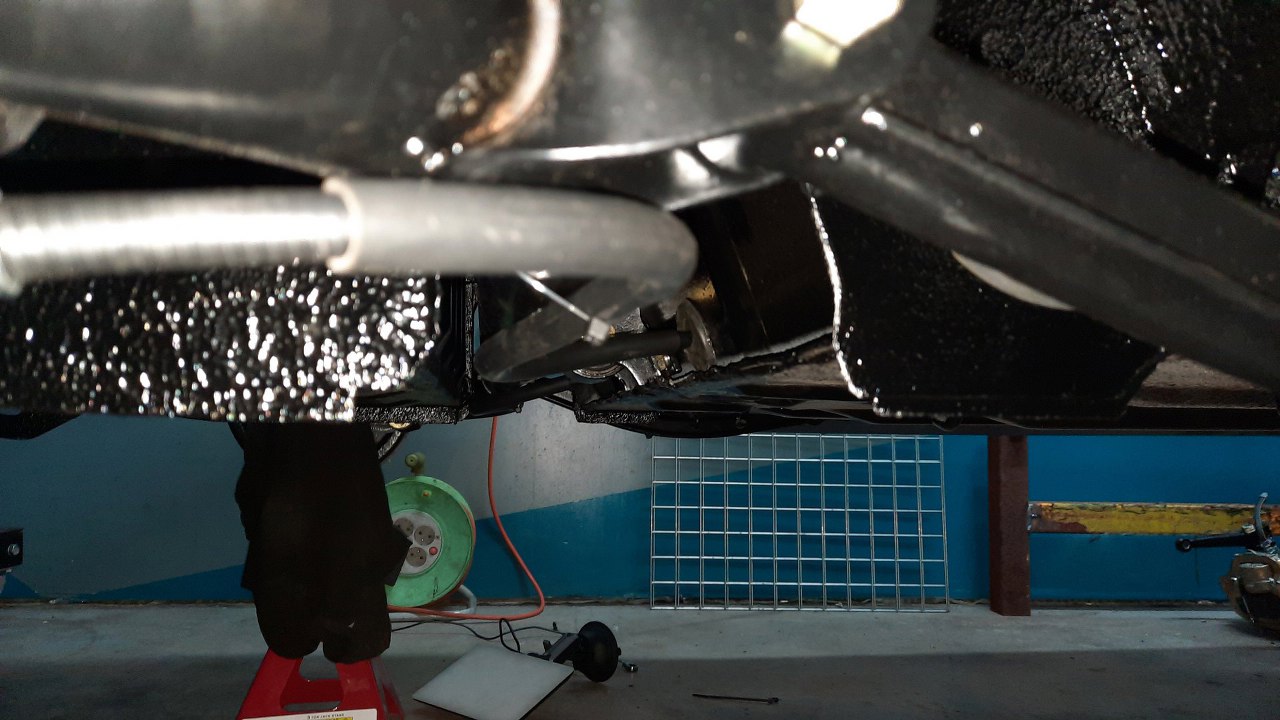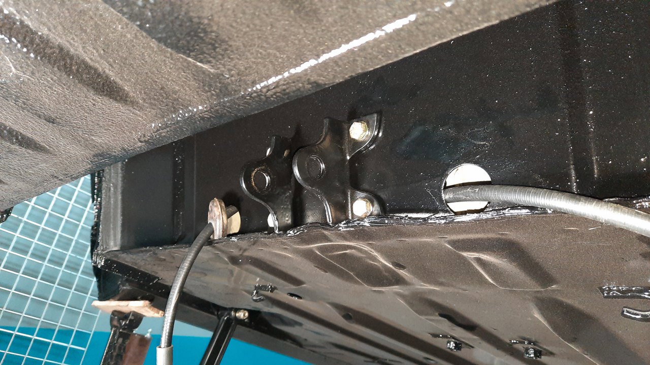 Od wewnątrz karoserii przykręciłem też końcówki rurek hamulcowych idących od zawieszenia.