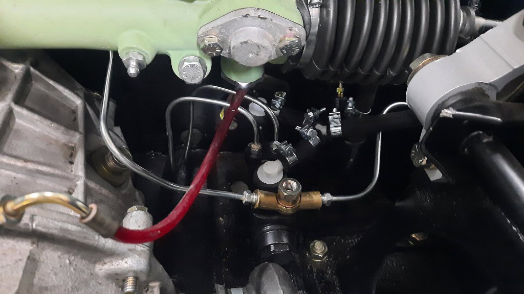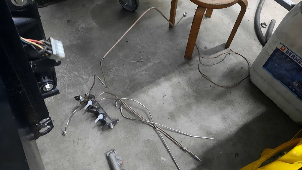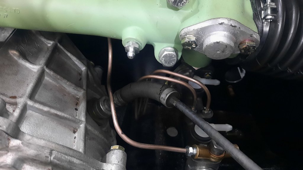 Niestety inna pompa wymaga dorobienia innych przewodów hamulcowych. Niestety teraz jest ciut trudniej, bo ktoś niecierpliwy włożył silnik ze skrzynią, przez co dostęp do pompy hamulcowej jest nieco utrudniony :).