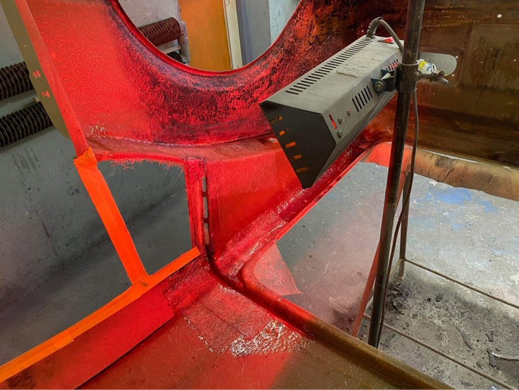 Przy schnięciu pomagają promienniki podczerwieni.