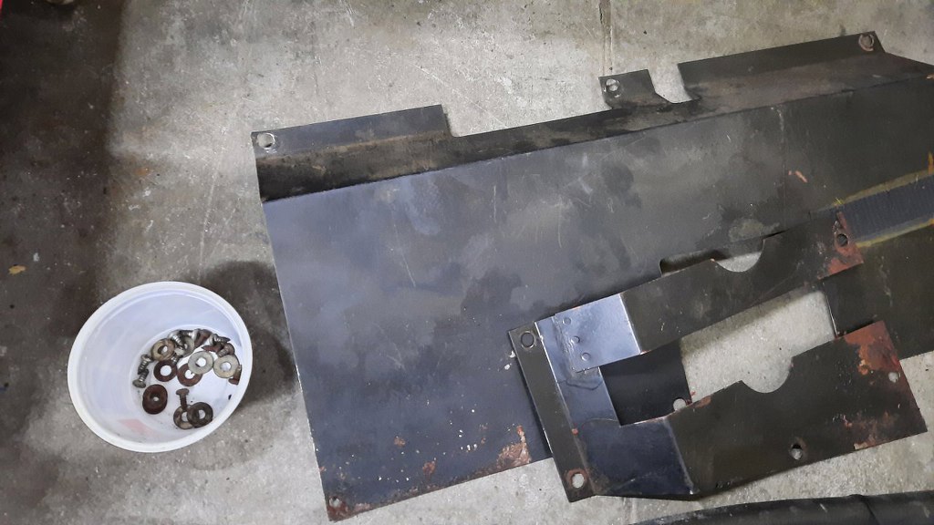 Wyciągnąłem też blachy przykręcane między podłogą a grodzią. Też trzeba je odnowić.