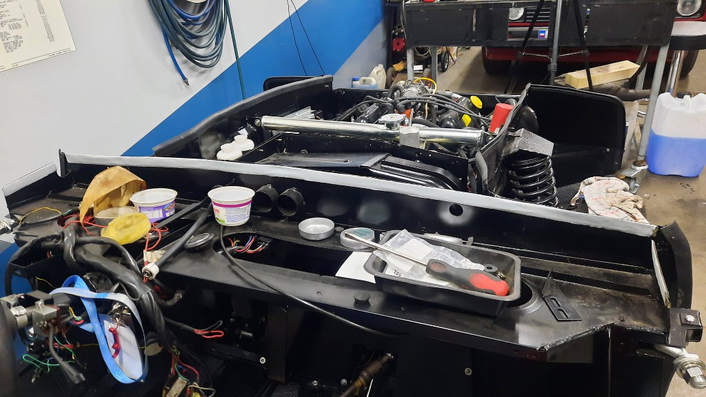 Potem wsporniki i zamki tylnej klapy i, widoczny na zdjęciu, przedniej maski.