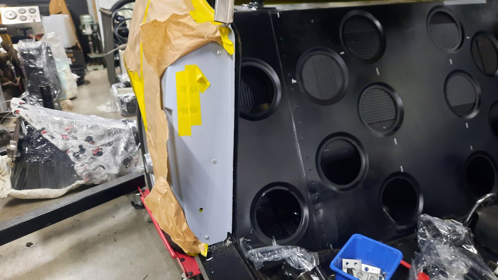 Wyciąłem dwa takie same kształty i dopasowałem do podwozia. Tam, gdzie brakowało tej podkładki musiałem zrobić najpierw szablon z kartki papieru, żeby wyznaczyć wszystkie potrzebne otwory.