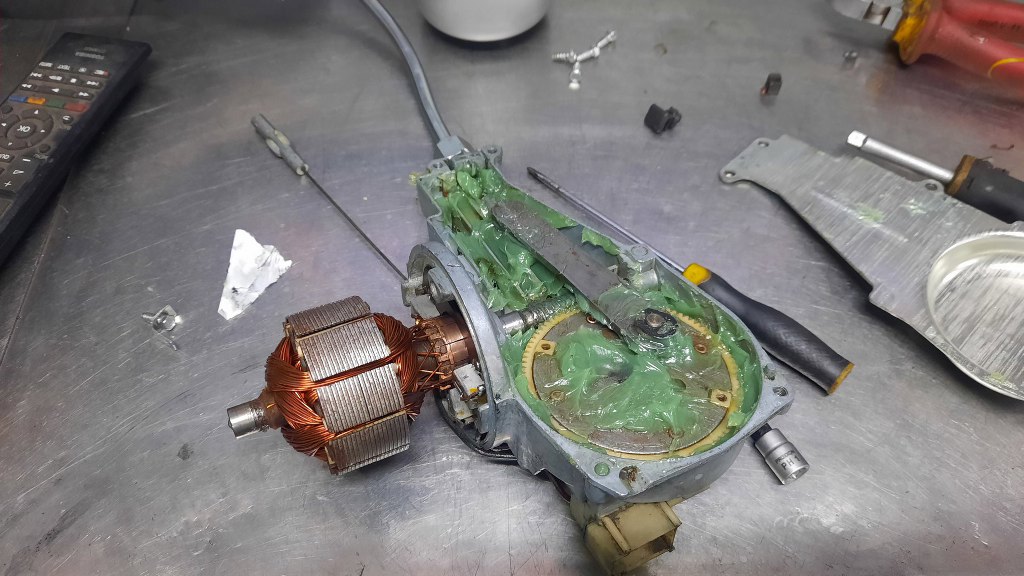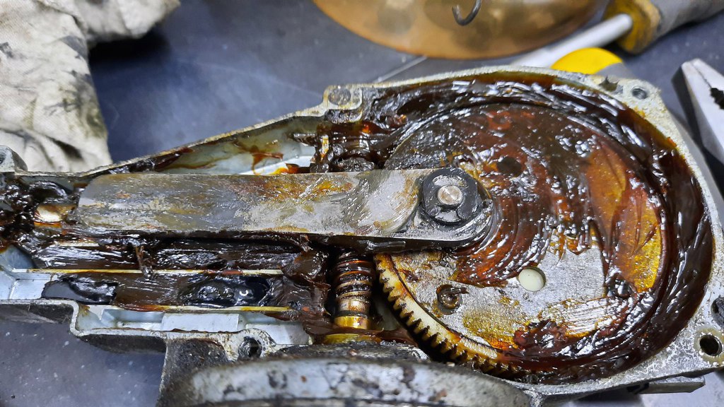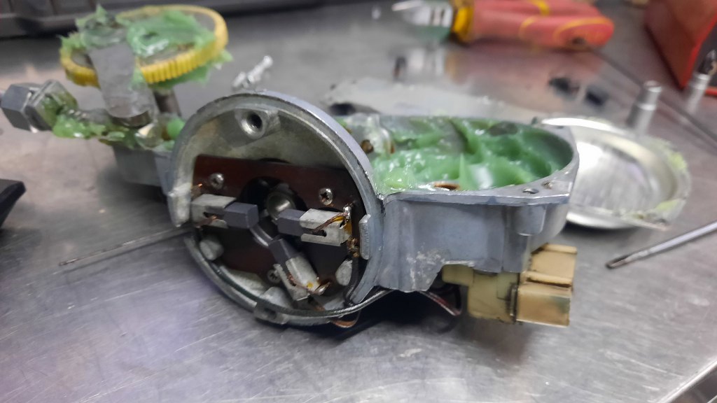 A teraz silniczek. Po otwarciu widać stary smar, który jest bardziej klejem niż smarem.