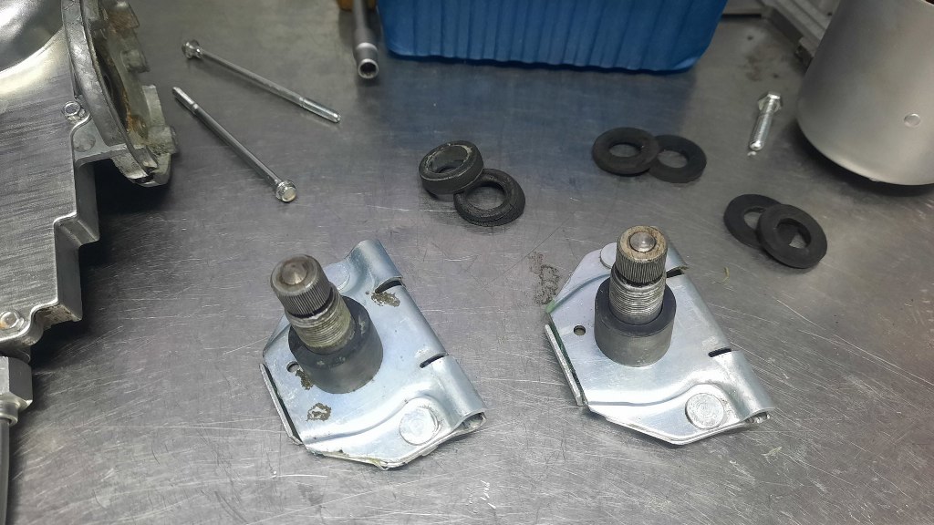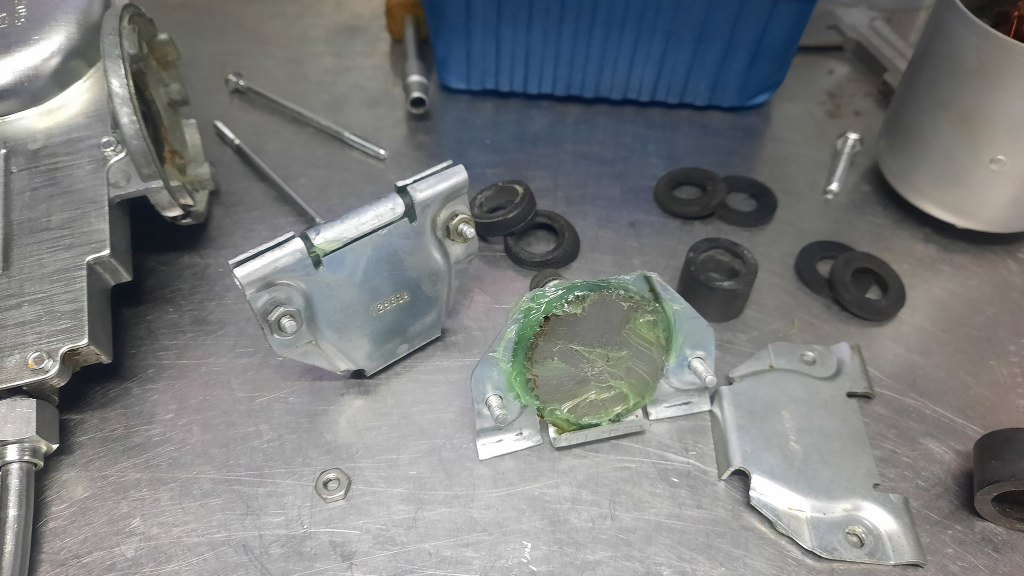 Uchwyt mocujący silniczek do karoserii też został odnowiony. Guma była już mocno sparciała, ale nowa nie jest dostępna. Wyciąłem zamiast tego pasek z gumy.