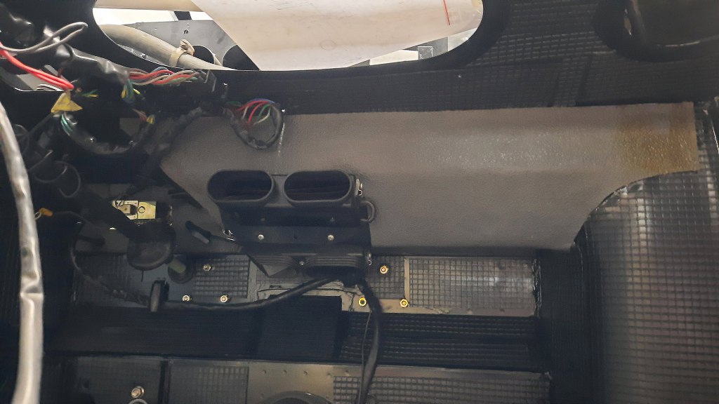 Od spodu przykleiłem tapicerkę, której i tak w ogóle nie widać, a nasępnie przykręciłem rozdzielacz nawiewu.