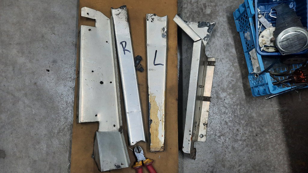 Zdjęcie z rozkładania samochodu - to są blachy nitowane do słupków A, na wysokości zawiasów drzwi. Tak wyglądały po demontażu.