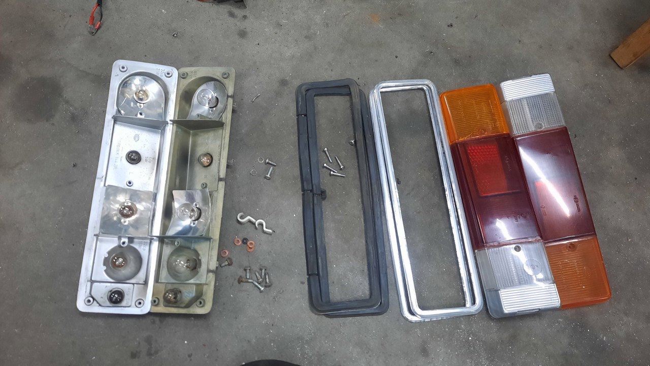 Tylne lampy są nie do zdobycia. Wkłady to nie problem, to że się różnią, nie przeszkadza w niczym. Założyłem domyte uszczelki.