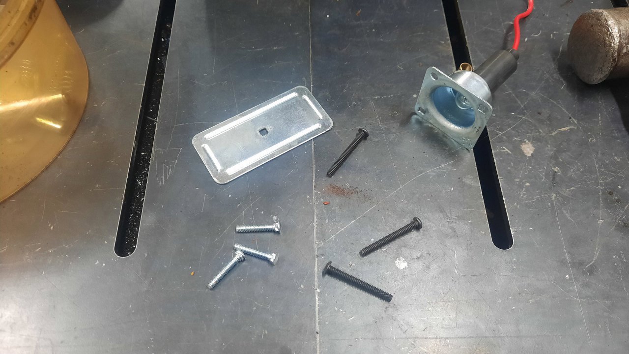 Śruby lekko złapałem spawarką do lampek i złożyłem to z powrotem. Teraz dam radę to przykręcić. Poprzednie śruby były za krótkie.