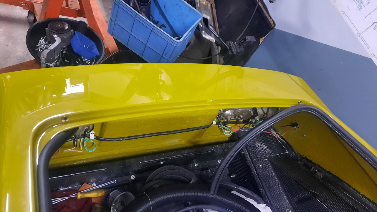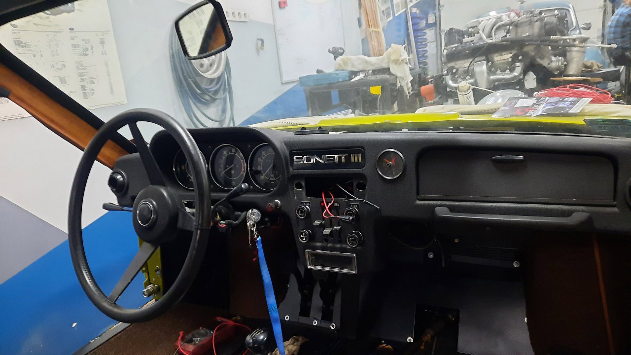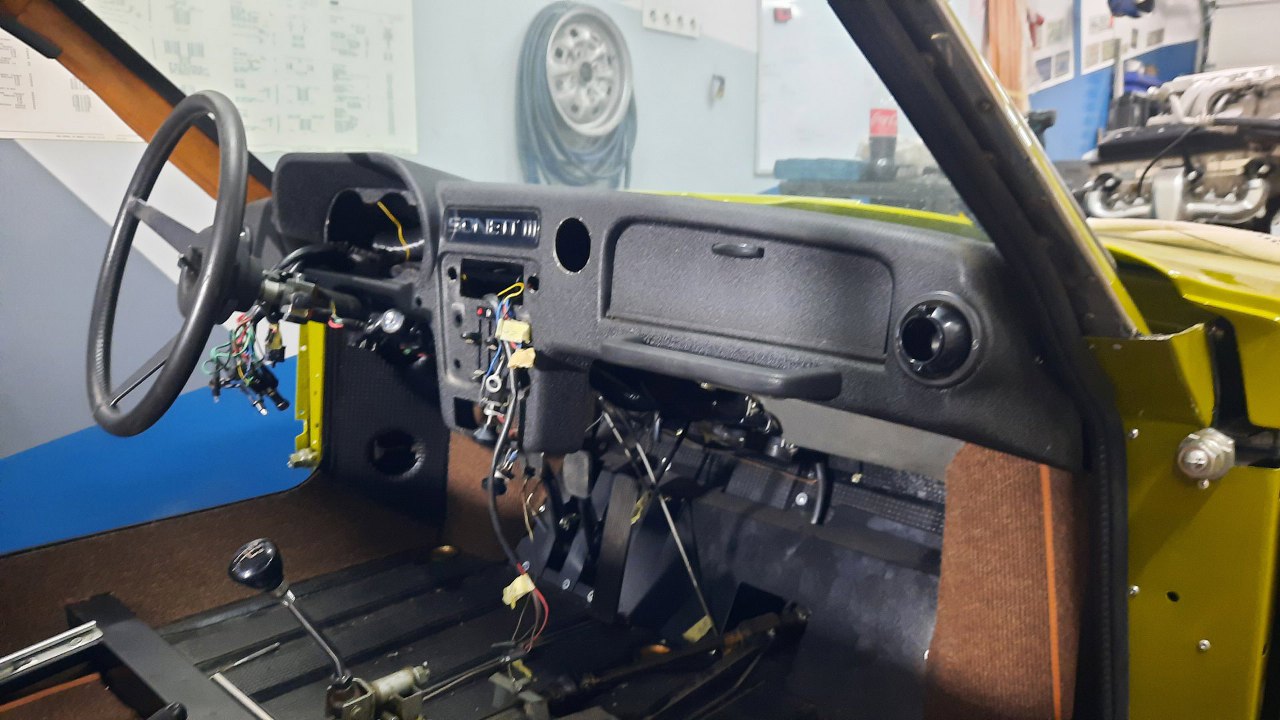 Mając podłączoną tylną część instalacji elektrycznej mogłem zacząć myśleć o wkładaniu deski rozdzielczej. Tu jest chyba najwięcej kabelków.