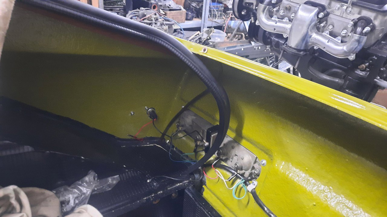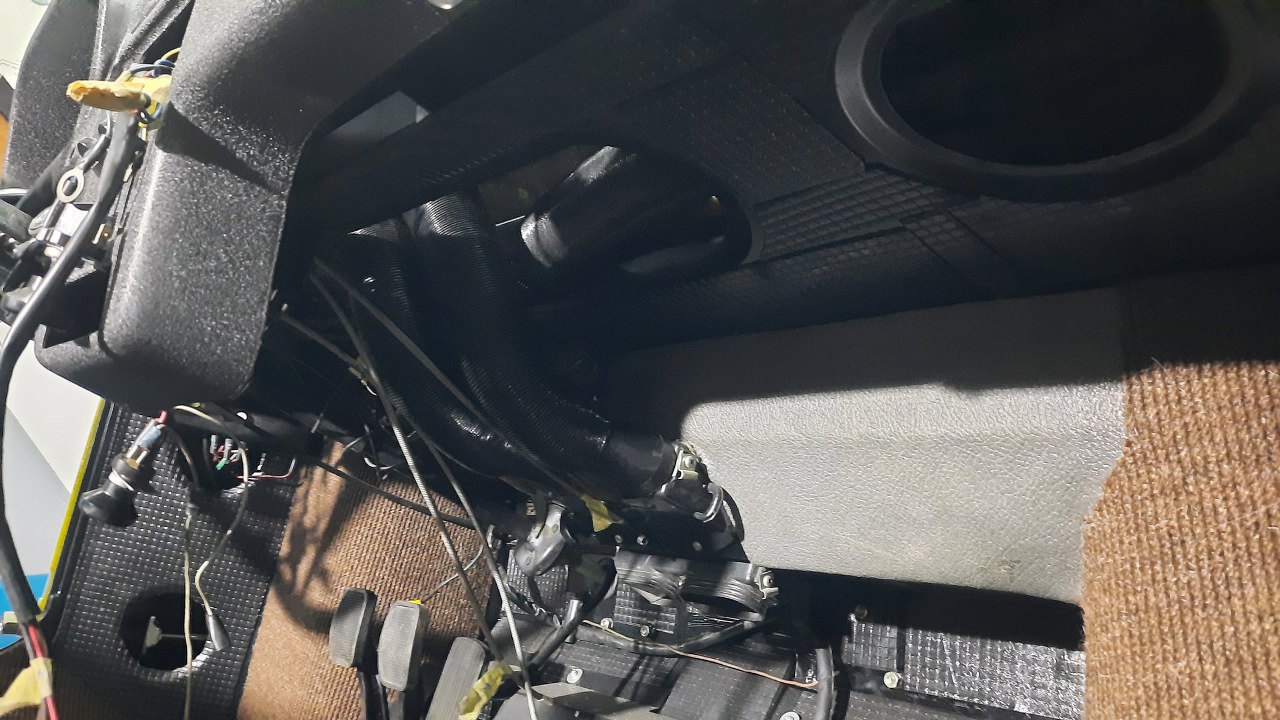 Połączone zostały wszystkie (nowe, żeby nie oddychać 50-letnim kurzem) rury nawiewów. Za chwilę też podłączę cięgna sterujące nawiewami.
