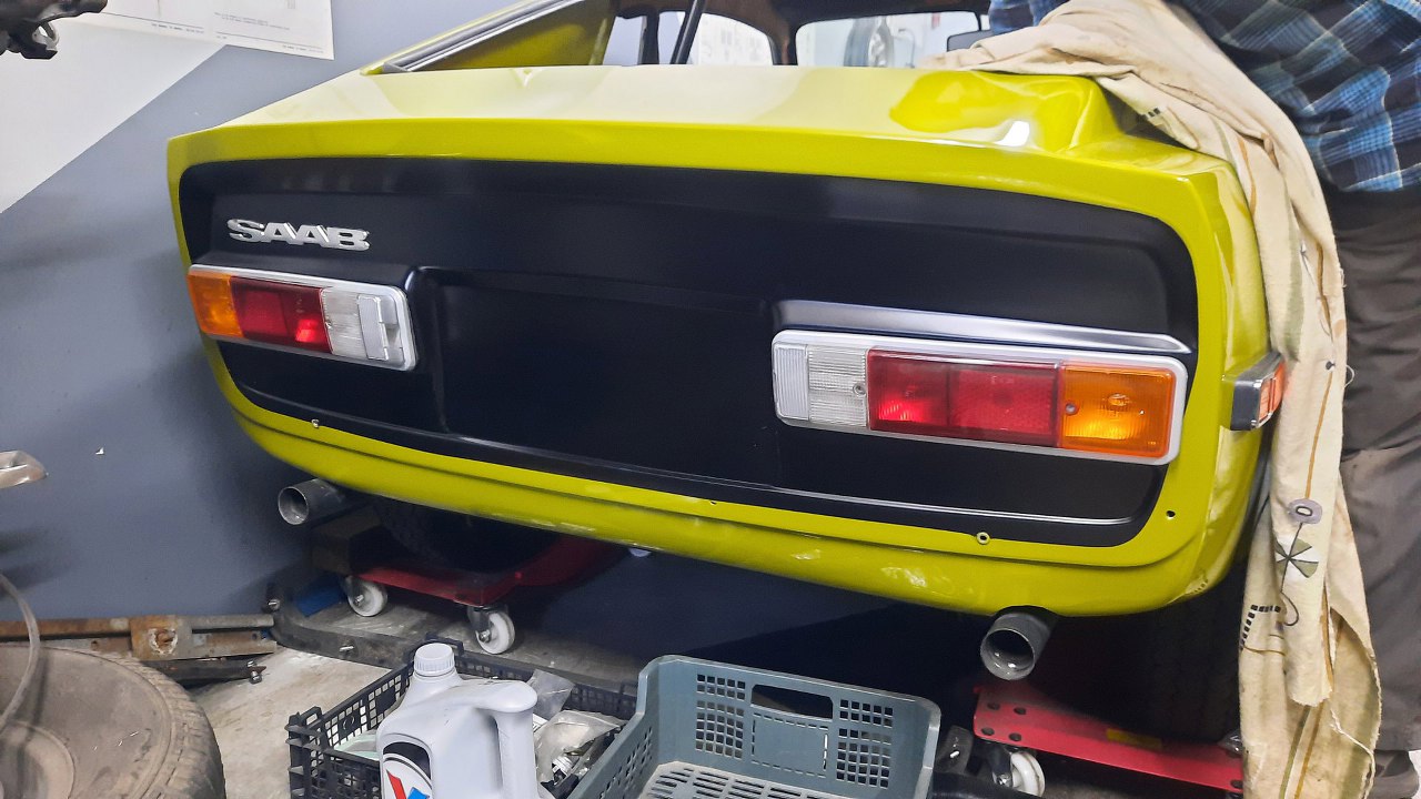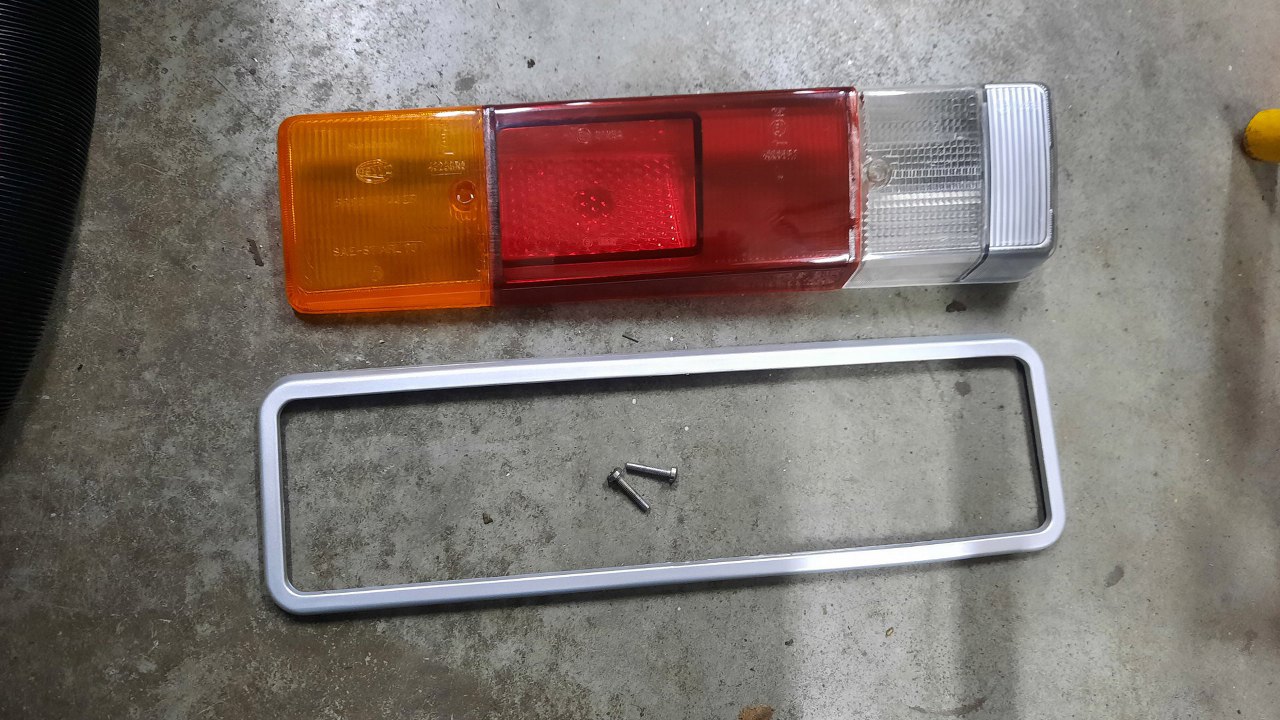 Po sprawdzeniu działania tylnych lamp mogłem zamontować klosze. Klosze zostały porządnie domyte. Ramki miały kiedyś napylony chrom od wewnątrz, ale już to częściowo odpadło i wyglądało niewyjściowo. Nie szukałem nikogo, kto by to napylił od nowa, bo i tak jedna ramka była pęknięta (lewa, pewnie przy okazji tej stłuczki kiedyś, która uszkodziła karoserię). Skleiłem ją więc i pomalowałem na srebrno.