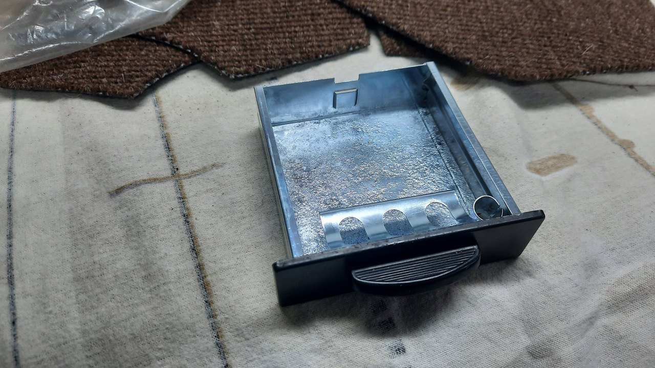 Podczas robienia tych "grubych" tematów, zostało sporo drobiazgów do dokończenia. Na przykład podczas wkładania deski rozdzielczej zobaczyłem, że popielniczka kwalifikuje się do odświeżenia.