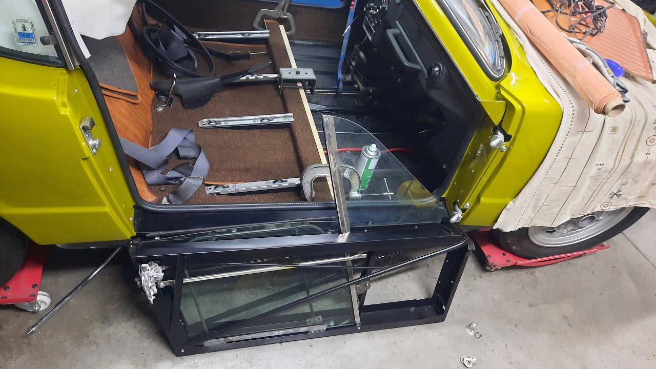 Żeby nie walały się po garażu i nie zajmowały miejsca, założę też wstępnie drzwi. Na razie samą konstrukcję, bo nie chcę ryzykować zarysowania na poszyciach.
