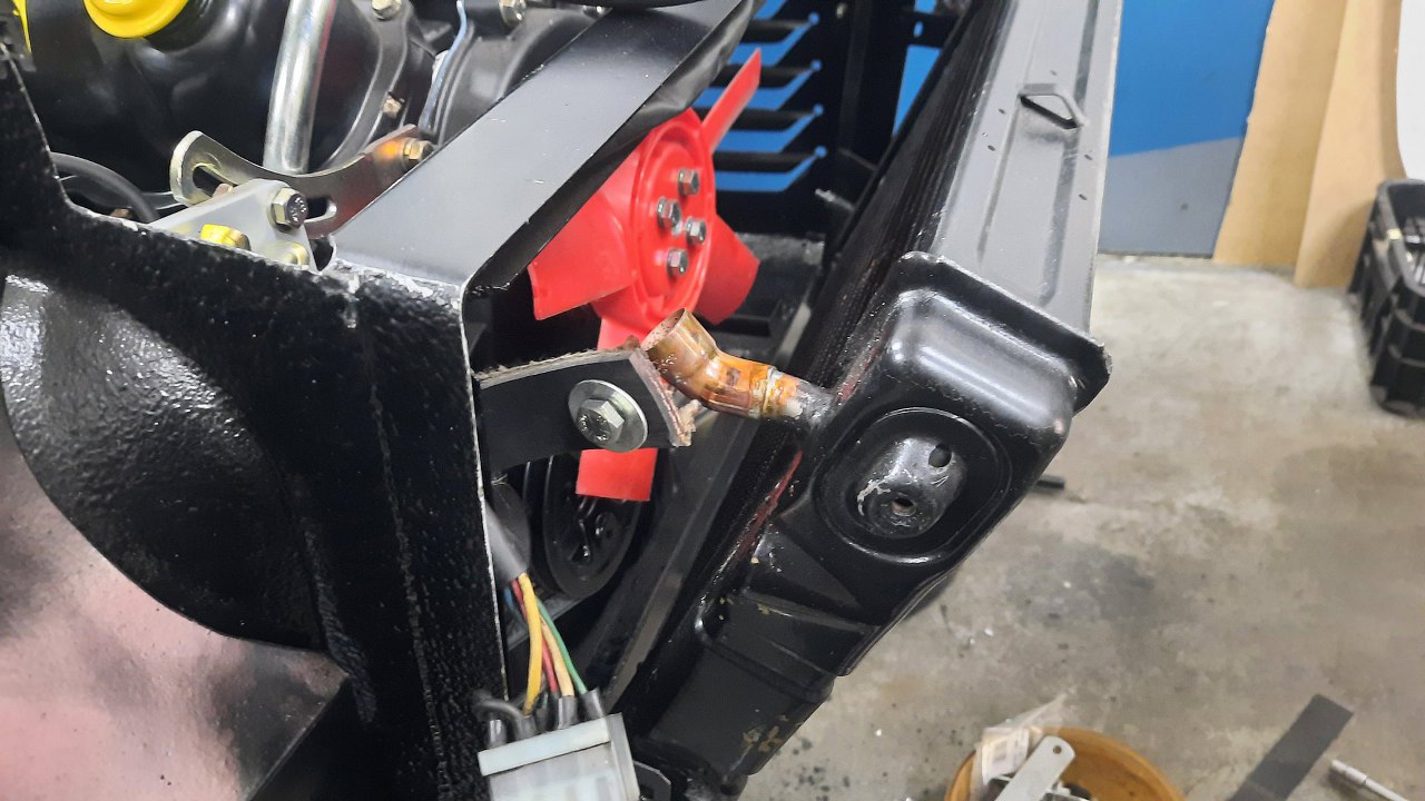 I przykręciłem to, na razie luźno. Będę jeszcze potrzebował dostępu do komory silnika.