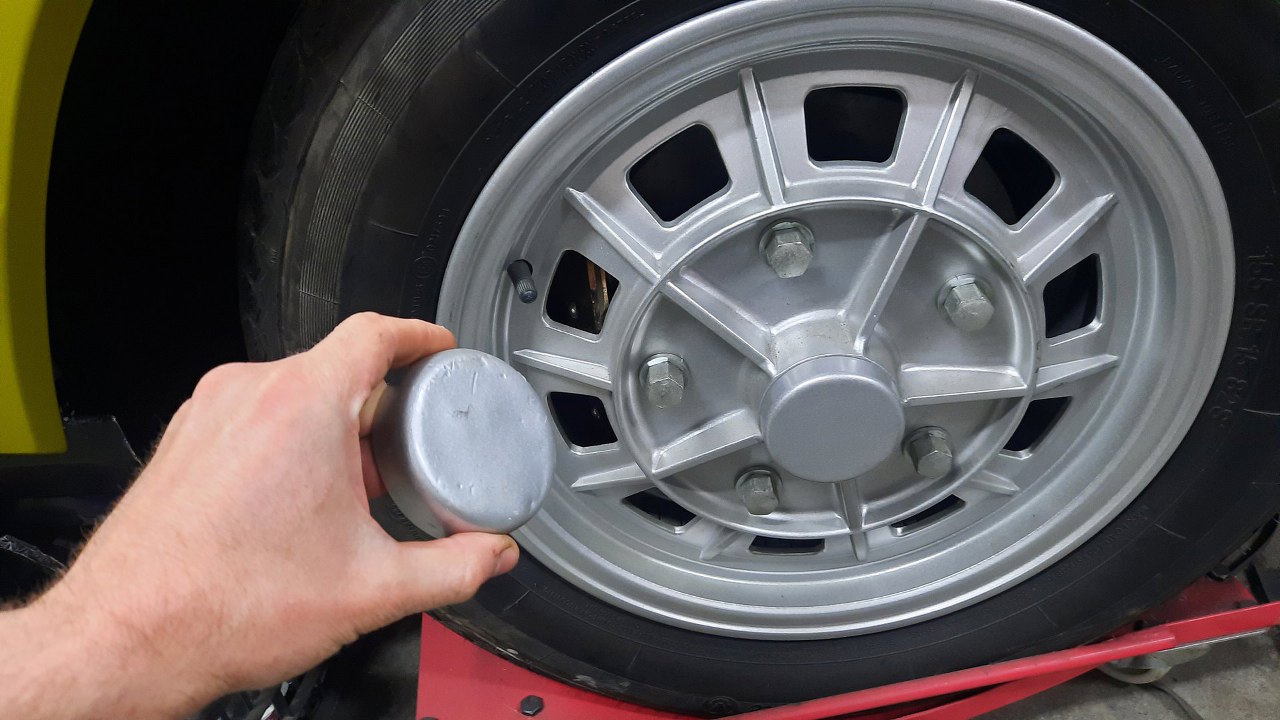Ponieważ felgi były kiedyś polakierowane proszkowo, kapselki też musiały zostać pomalowane, tak, żeby pasowały. Pomalowane były tylko z zewnątrz, żeby nie pasowały na felgę za ciasno. Wyszło idealnie.