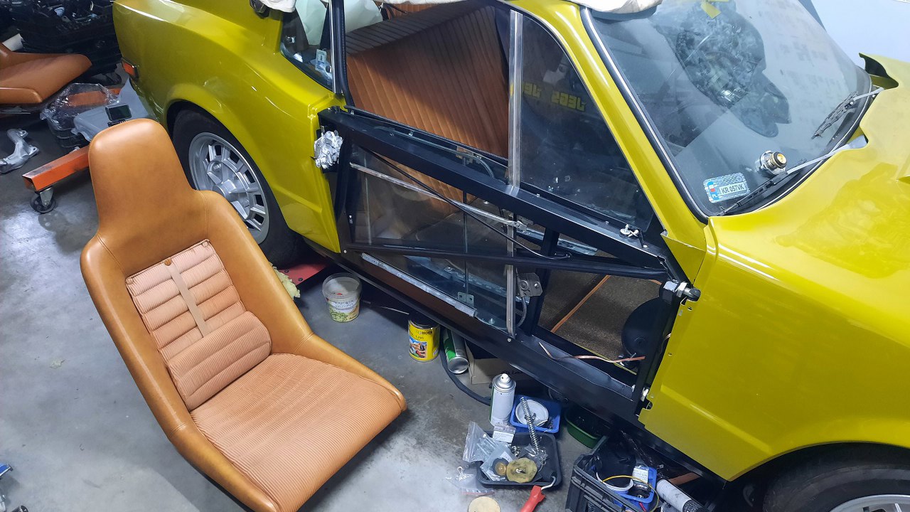 Przednia część wnętrza jest też już prawie gotowa. Został mi tylko kabelek do lewego głośnika w drzwiach i będę mógł przykleić ostatni panel wykładziny przed drzwiami.