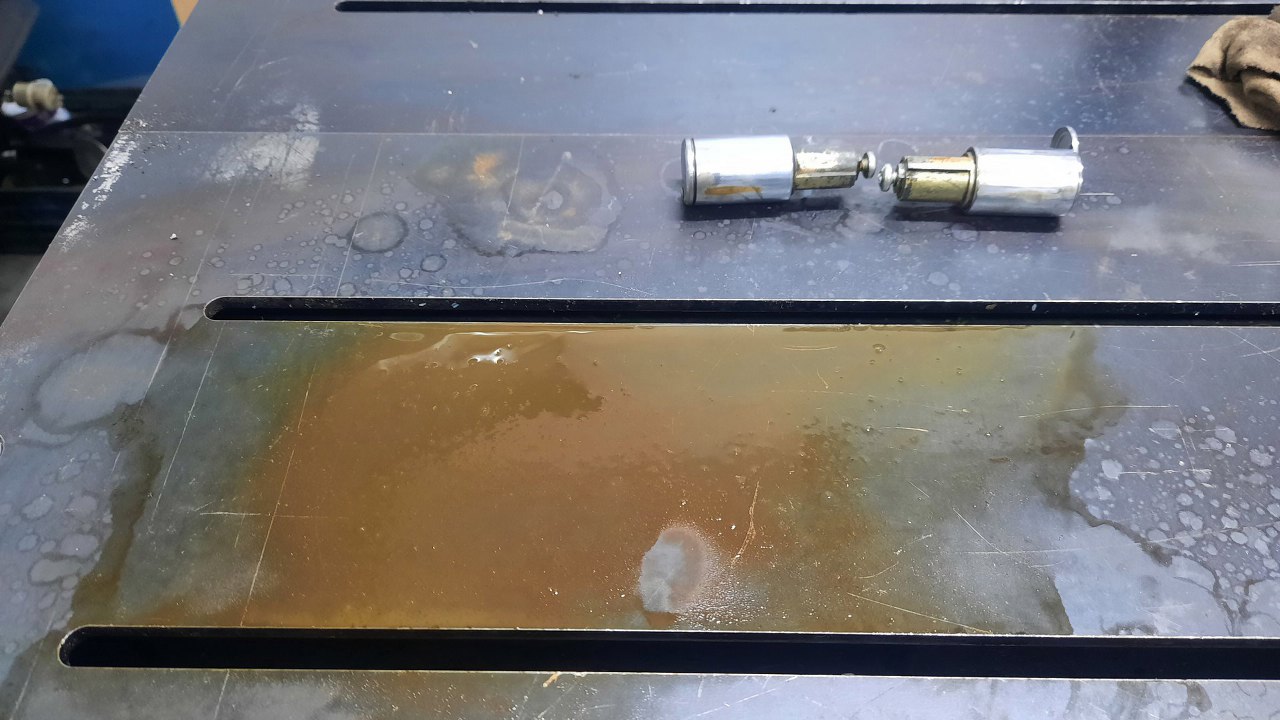Przyszła pora i na drzwi. Wyciągnąłem z półki zamki drzwi. Ta breja, to jest wszystko, co z nich wypłukałem.