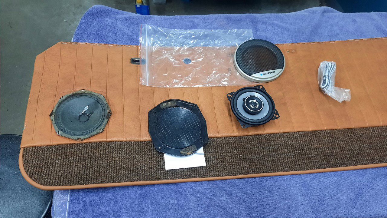Trzeba oczywiście przewlec kabelek przez otworki. Fabrycznie nigdy tu nie było głośników, był jeden w desce rozdzielczej. Ale dziury w tapicerce już były... Tapicerka jest w na tyle dobrym stanie, że nie ma co jej wymieniać, dlatego i głośniki w drzwiach zostają.