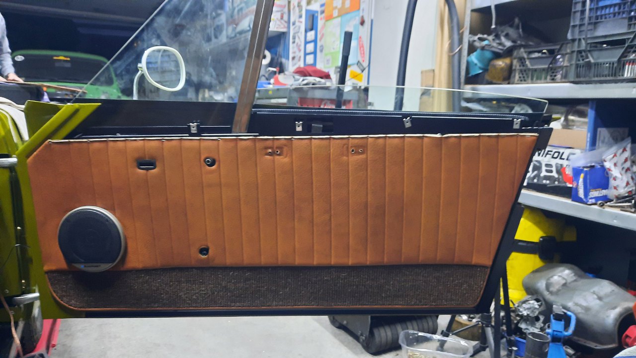 Nastęnym etapem składania drzwi są boczki. Zostały wyprane, a dolna część jest wszyta nowa, taka sama, jak jest wykładzina. Wstawiamy też nowe głośniki.