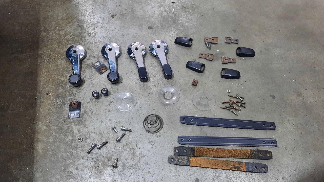 A tu cała reszta drobnicy potrzebnej do dokończenia drzwi. Paski do zamykania są dorobione nowe, stare były ciut za bardzo wyświechtane.