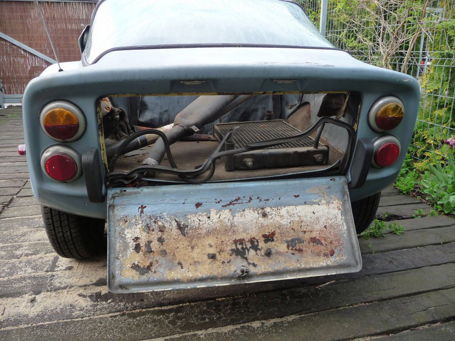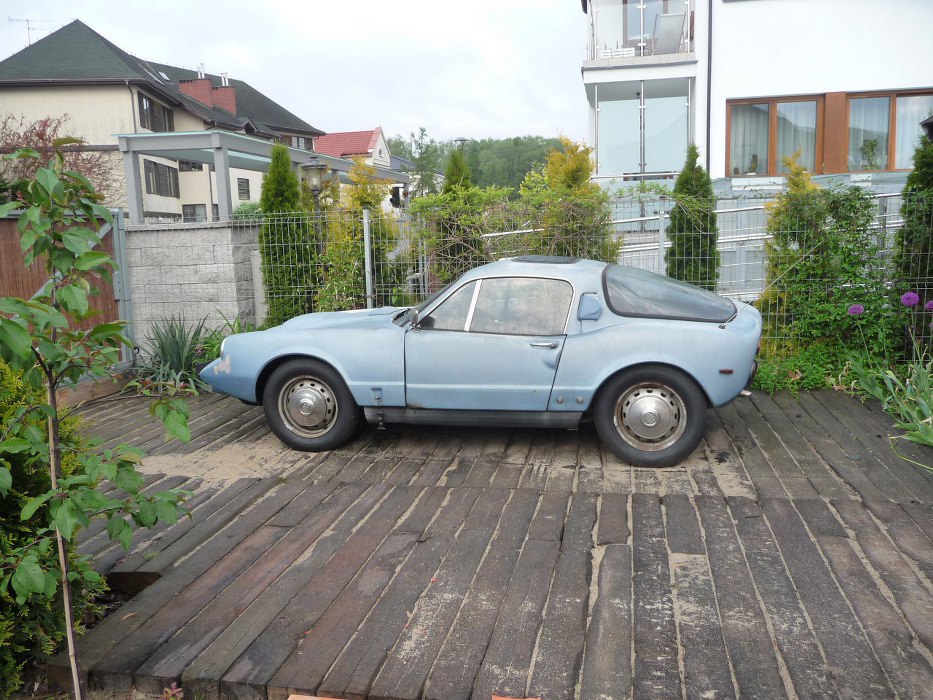 Zostałem poproszony o ocenę stanu technicznego pewnego auta. Jest to Saab Sonett z 1969r., drugiej generacji. Został on kupiony w sumie w ciemno w Kalifornii i sprowadzony do Polski. Właściciele po raz pierwszy zobaczyli go gdy był zdejmowany z lawety przed moim domem. Stan auta podobno nieco się różnił od opisu :). W każdym razie autko jest pocieszne, przeraźliwie małe i niskie, ale za to lekkie.